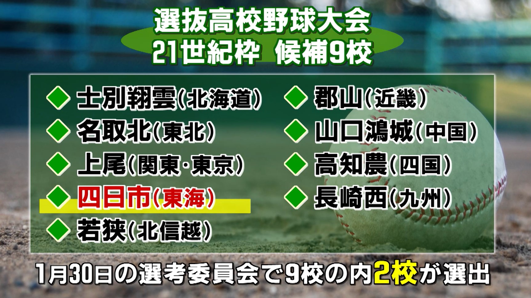 3月に開幕するセンバツ甲子園の21世紀枠の候補校に選ばれ、出場が期待されている四日市高校。