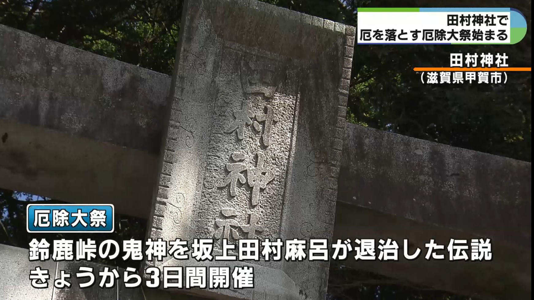 滋賀県と三重県の境にある鈴鹿峠に位置する田村神社では、1200年の歴史を持つ厄除大祭が17日から始まりました。