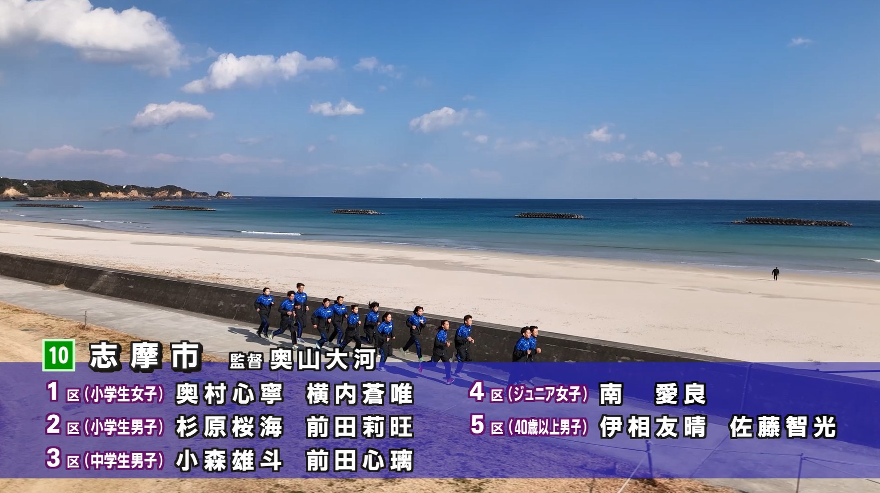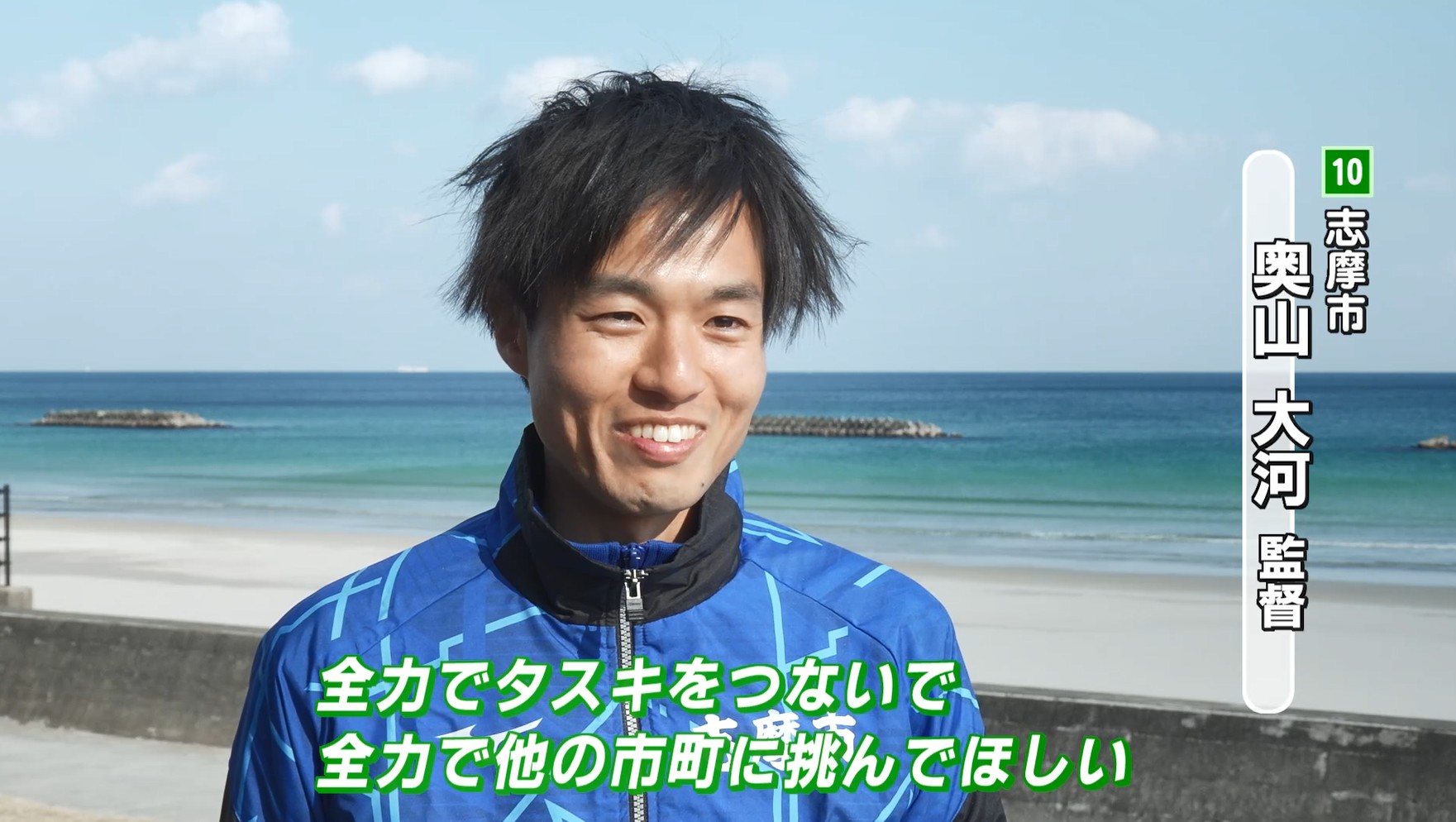 奥山大河監督は「新にメンバーとなった選手や去年メンバーだった選手たちが、それぞれの環境の中で1年間練習を積んできて、非常に期待できるメンバーが揃っている。全力でタスキをつないで全力で他の市町に挑んでほしい」とチームに期待をかけます。