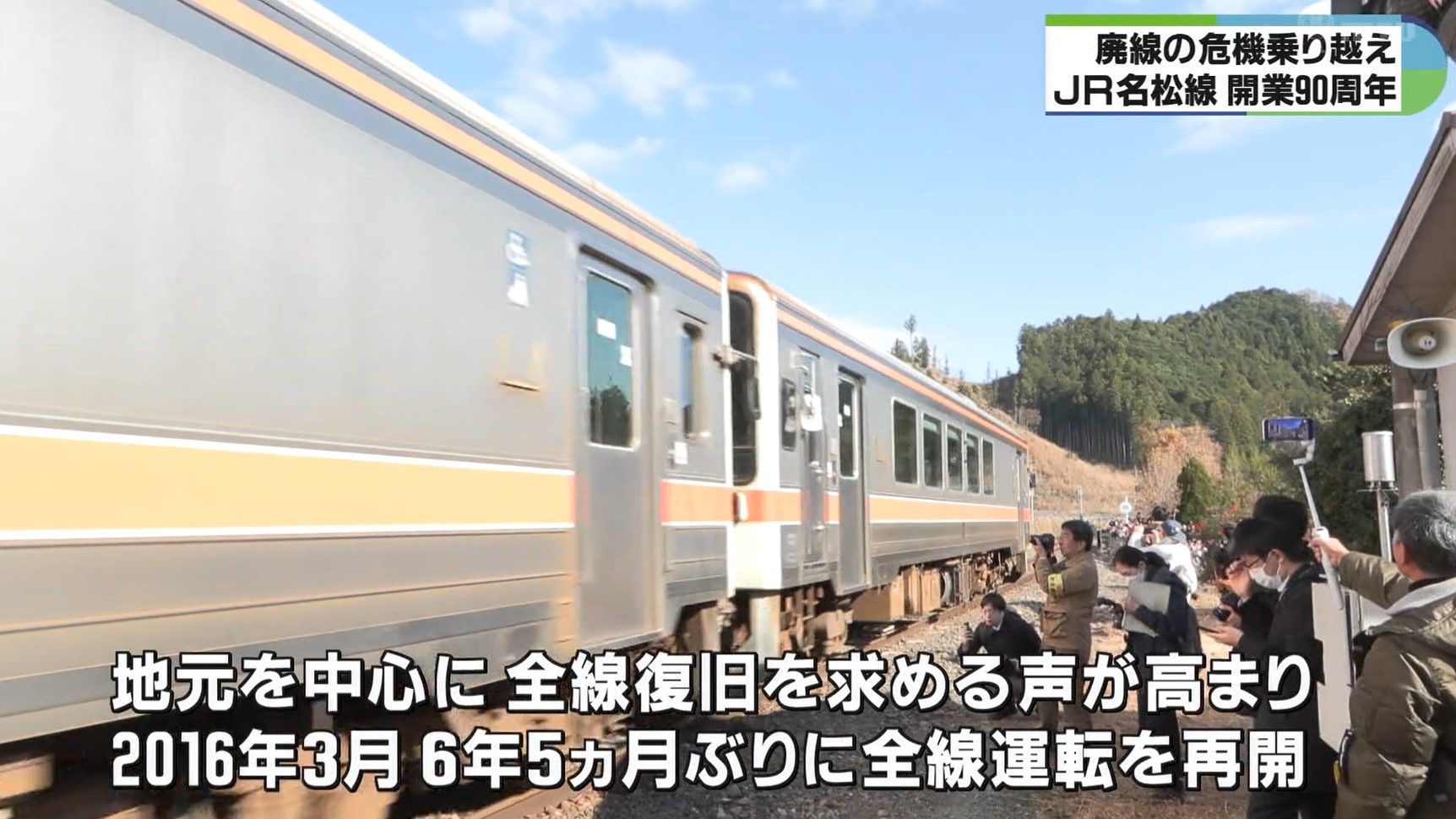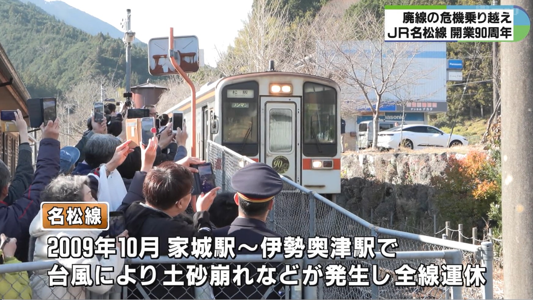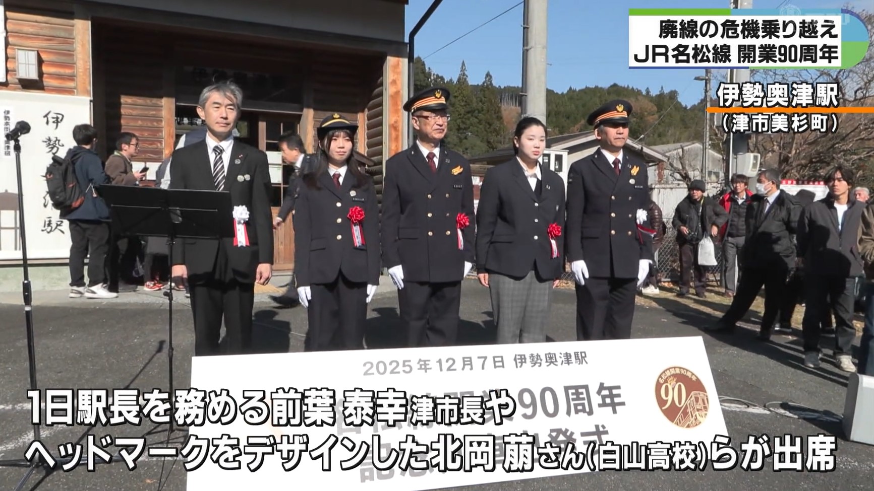 三重県松阪市中心部と津市美杉町を結ぶJR東海の名松線が12月5日で開業90周年を迎え、7日、終点の伊勢奥津駅で記念のセレモニーが開かれました。
