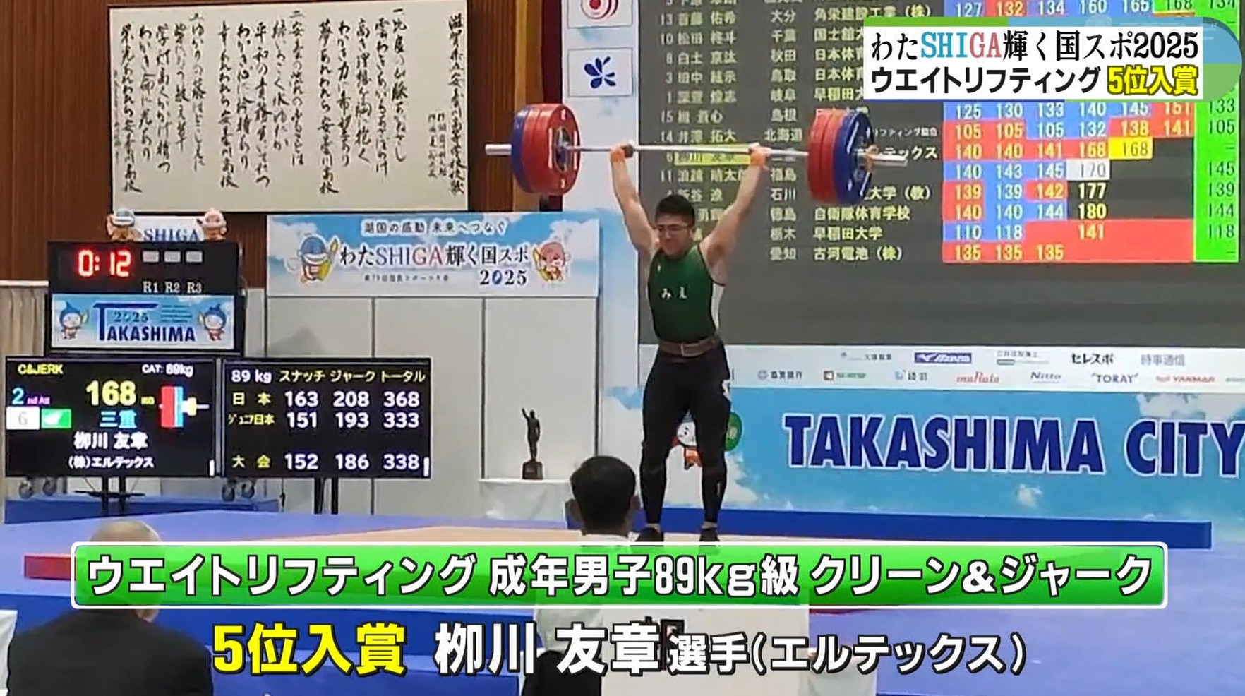 ウエイトリフティング成年男子89キロ級で柳川友章選手がクリーン&ジャークで5位入賞。