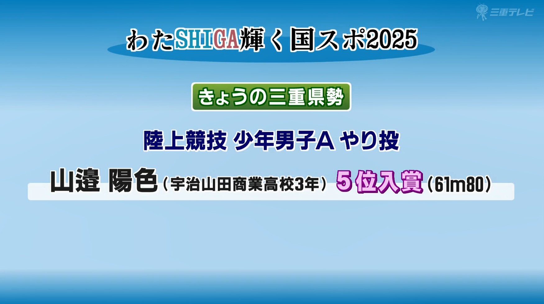 陸上競技少年男子Aやり投げ競技で山邉陽色選手が61m80の記録で5位入賞。