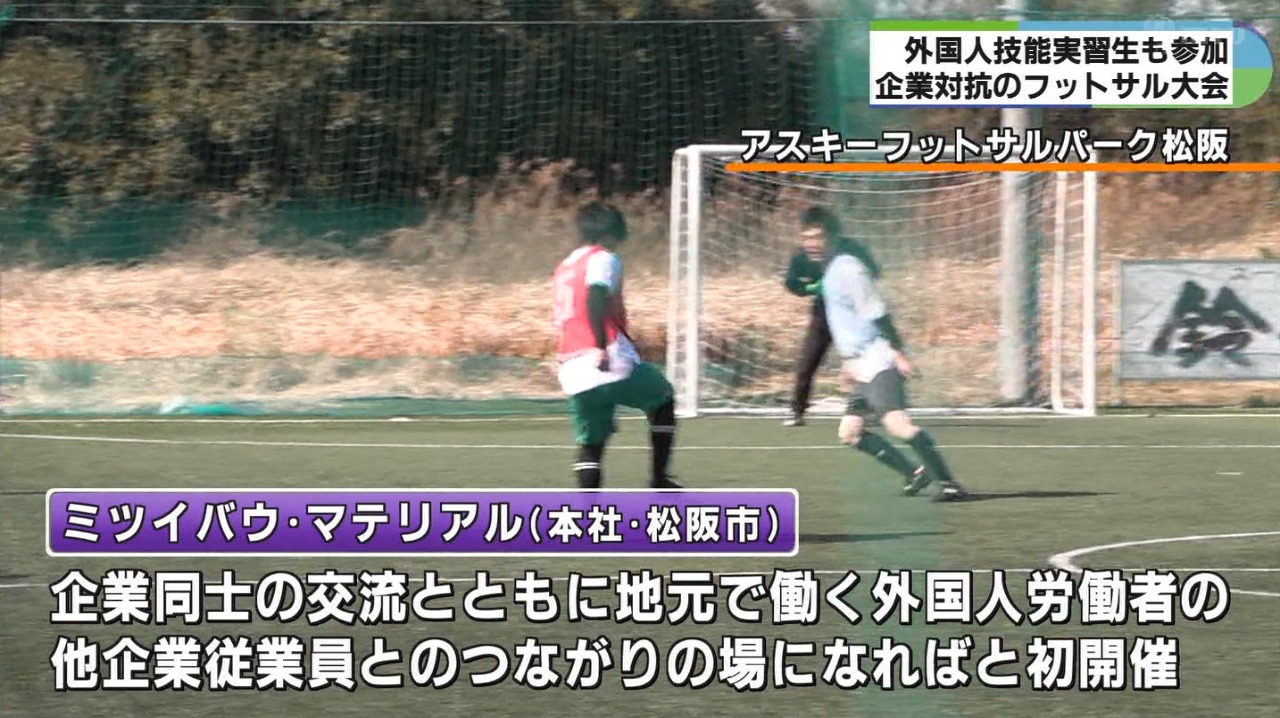 スポーツを通じて地元の企業が交流を深めることで地域の活性化につなげようと15日、三重県松阪市で企業対抗のフットサル大会が開かれました。