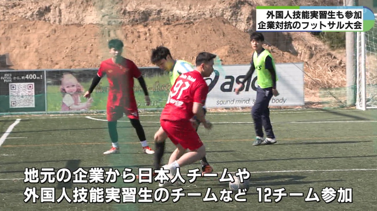 大会には、地元の企業から日本人チームや外国人技能実習生らでつくるチームなど12チームが参加、7分ハーフの試合に臨みました。