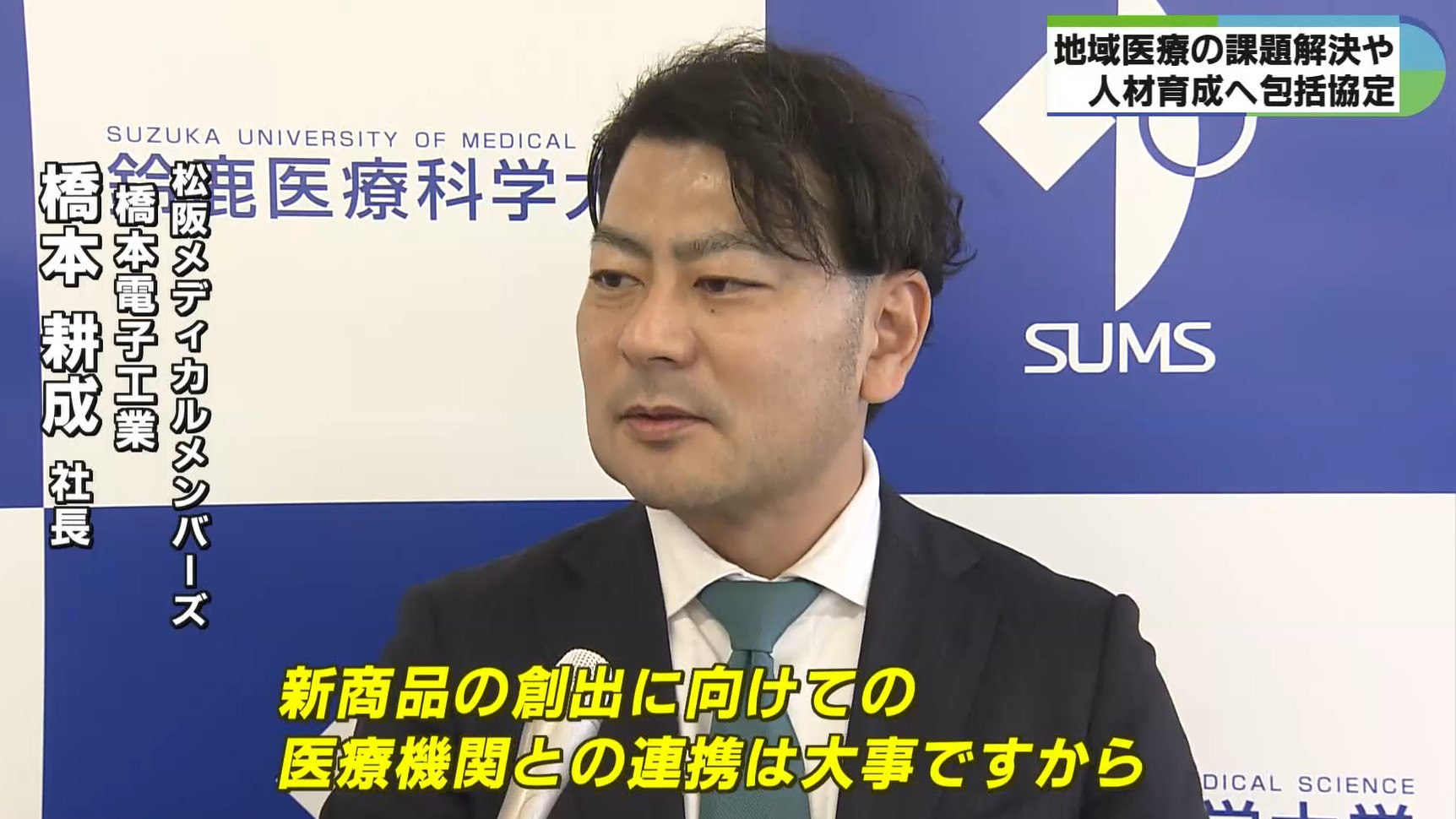 2022年に三十三地域創生による紹介で、松阪メディカルメンバーズ各社の商品や技術を紹介する展示会が鈴鹿医療科学大学で開かれたことを機に、地域医療の課題解決などにむけより深い関係性のもとで取り組もうと包括協定を結ぶことになりました。