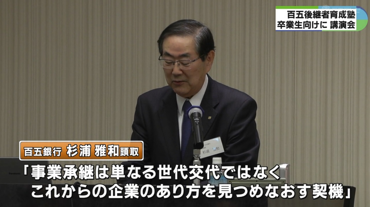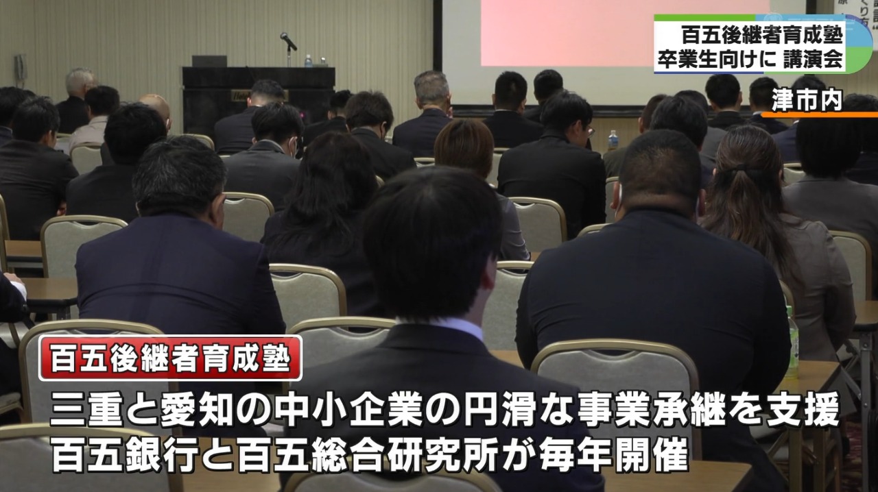事業承継の必要性や対応策などについて学ぶ、百五銀行の後継者育成塾の卒業生へ向けた講演会が、17日津市内で開かれました。