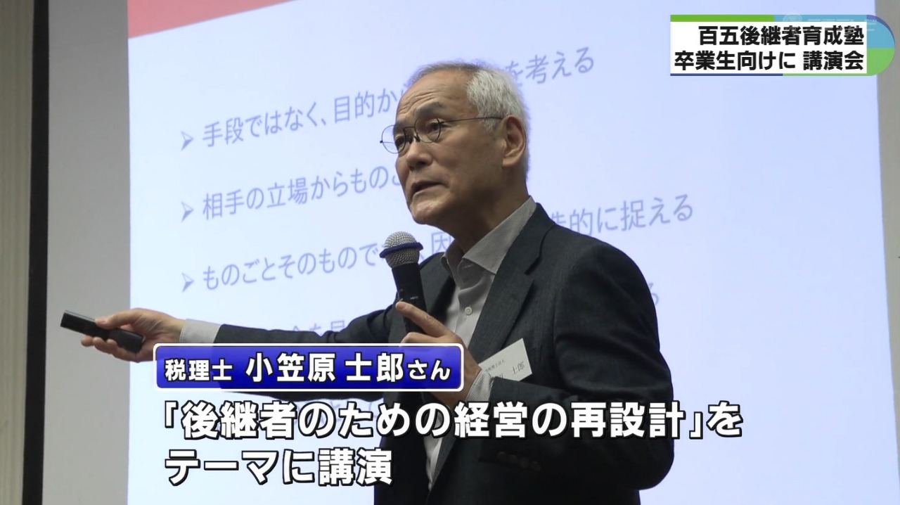 続いて中小企業の財務と経営に携わる税理士の小笠原士郎さんが登壇し、「後継者のための経営の再設計」をテーマに講演を行いました。