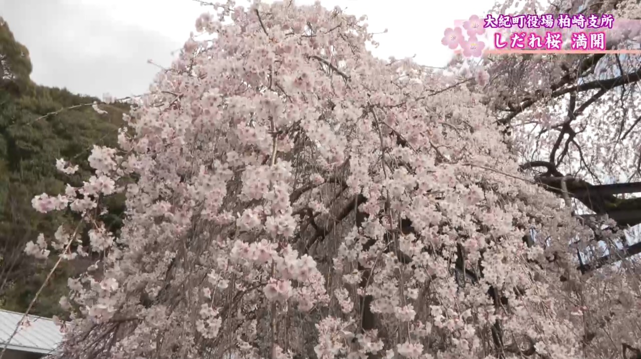大紀町役場柏崎支所のしだれ桜は、天気が良ければあと数日は楽しめるということです。