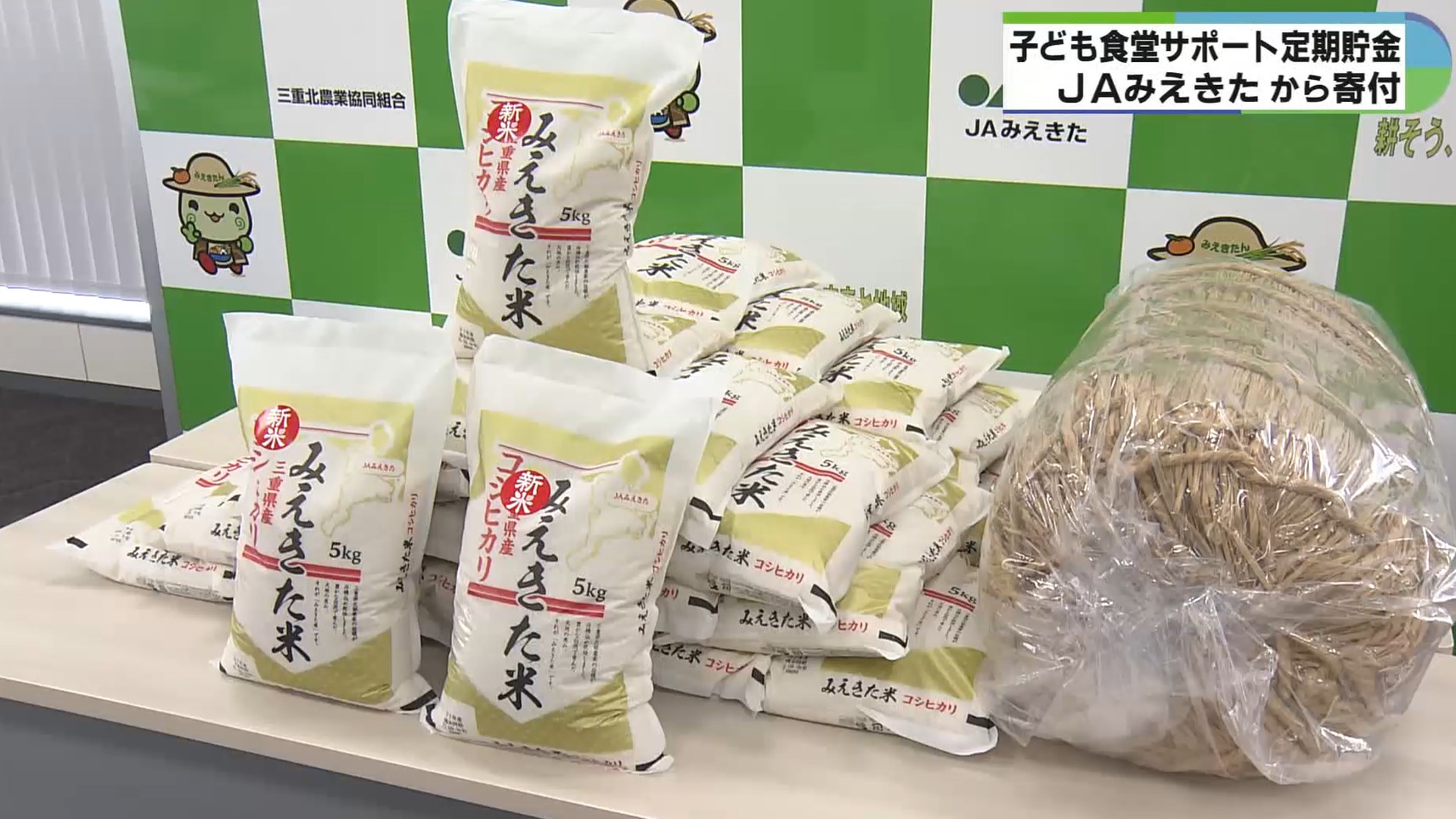 また、今年は子ども食堂に欠かせないものとして、JAみえきた管内で生産されたコシヒカリも贈られました。