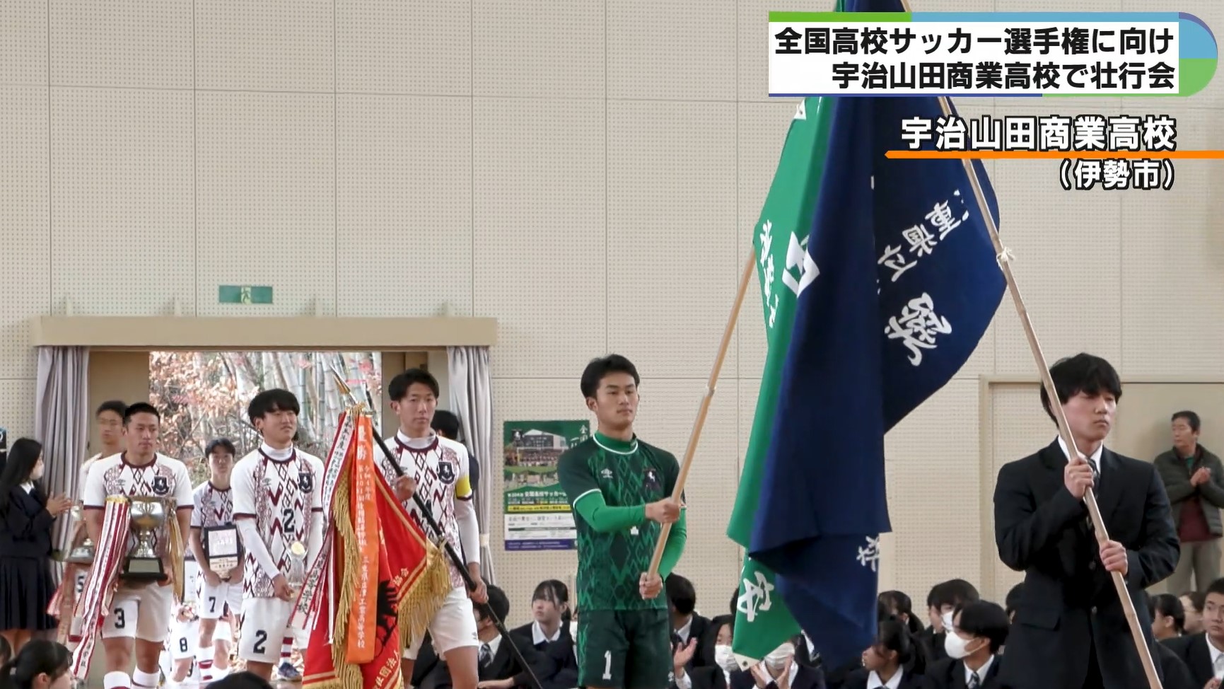 12月28日に開幕する全国高校サッカー選手権に向けて、23日、宇治山田商業高校のサッカー部を激励する壮行会が開かれました。