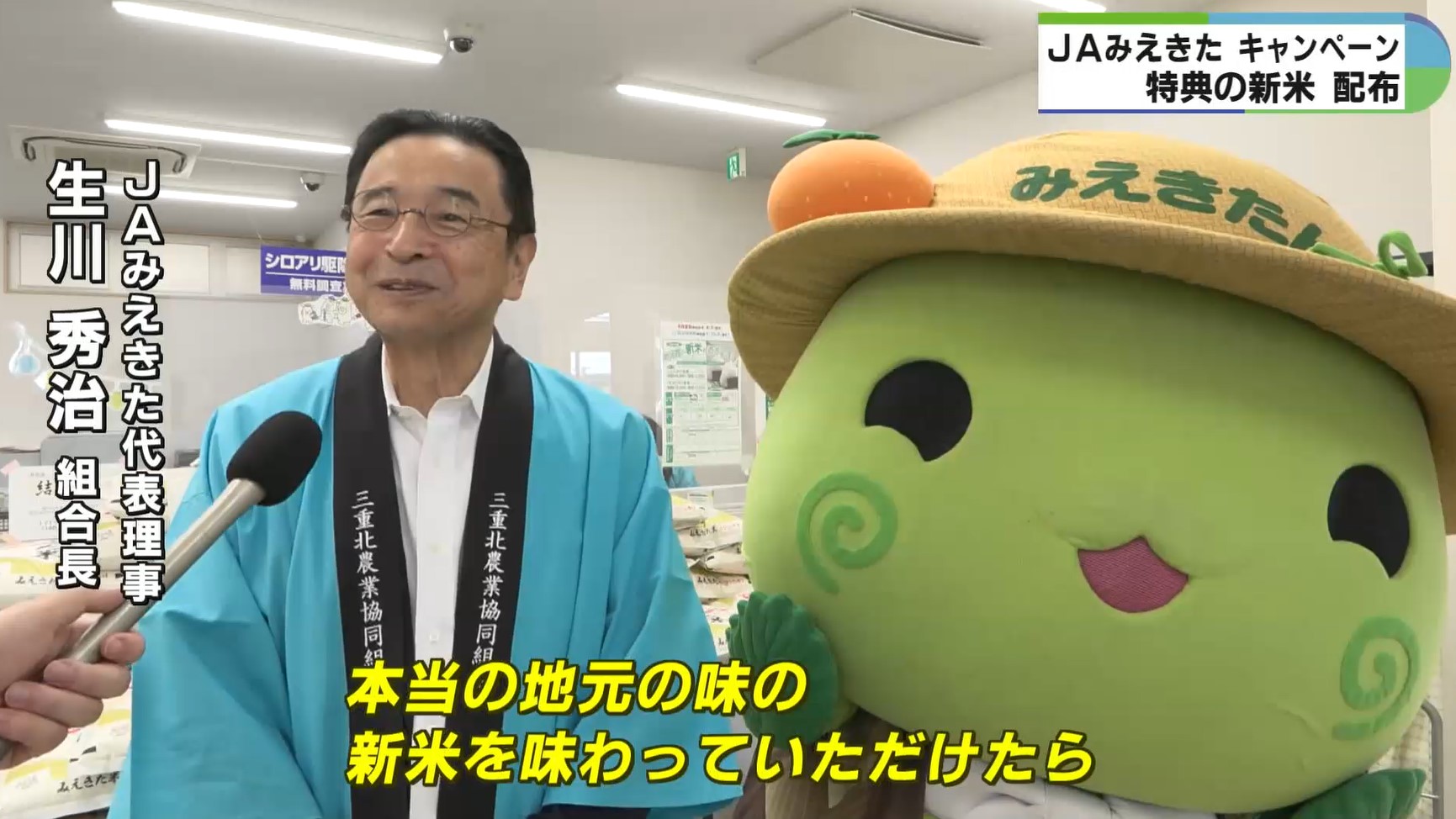 JAみえきたが行った定期貯金のキャンペーンで、一定の金額を預けた利用者に新米をプレゼントする特典が用意され、24日に利用者へ地元産のコシヒカリが手渡されました。