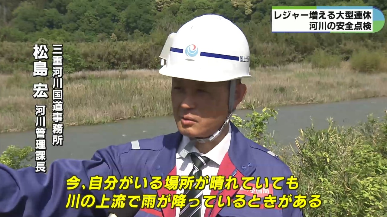 近年、大型連休の期間中でも気温が高く、釣りや川遊びなどのレジャーを楽しむ人が増えているということで、三重河川国道事務所では、水難事故への注意を呼びかけています。