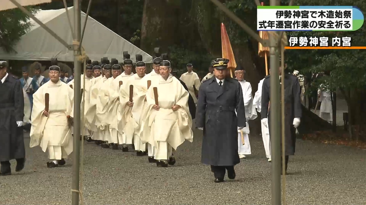 伊勢神宮の社殿を20年に一度建て替える2033年の式年遷宮に向けて、21日に社殿の造営工事の安全を祈る「木造始祭」が行われました。