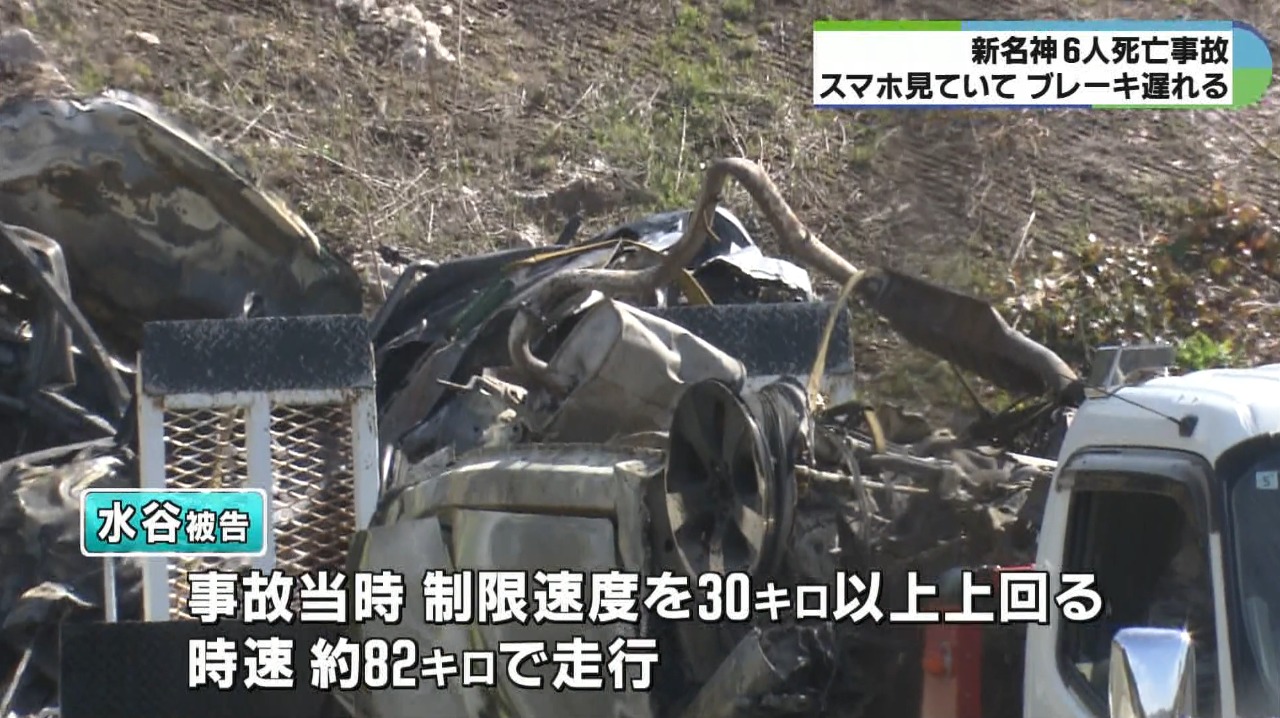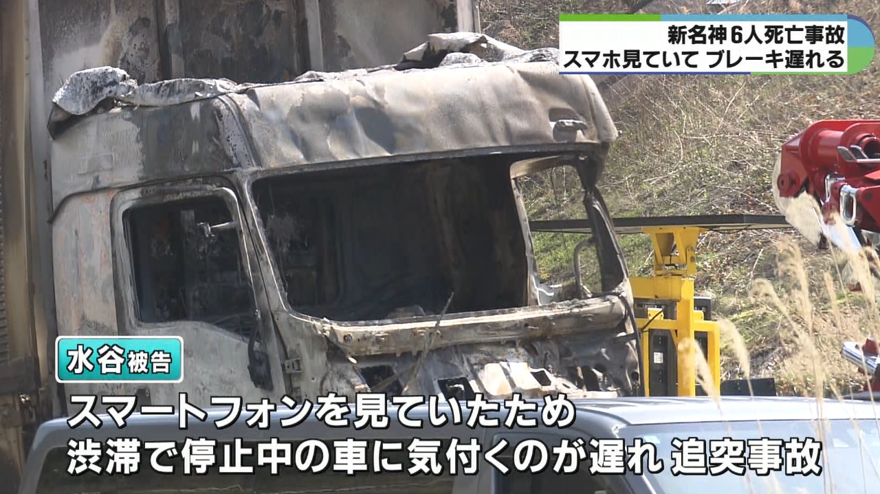 起訴状などによりますと水谷被告は、事故当時、制限速度を30キロ以上上回る時速約82キロで走行していてスマートフォンを見ていたため、渋滞で停止中の車に気付くのが遅れて追突事故を起こし2台の乗用車に乗っていた6人を死亡させたものです。