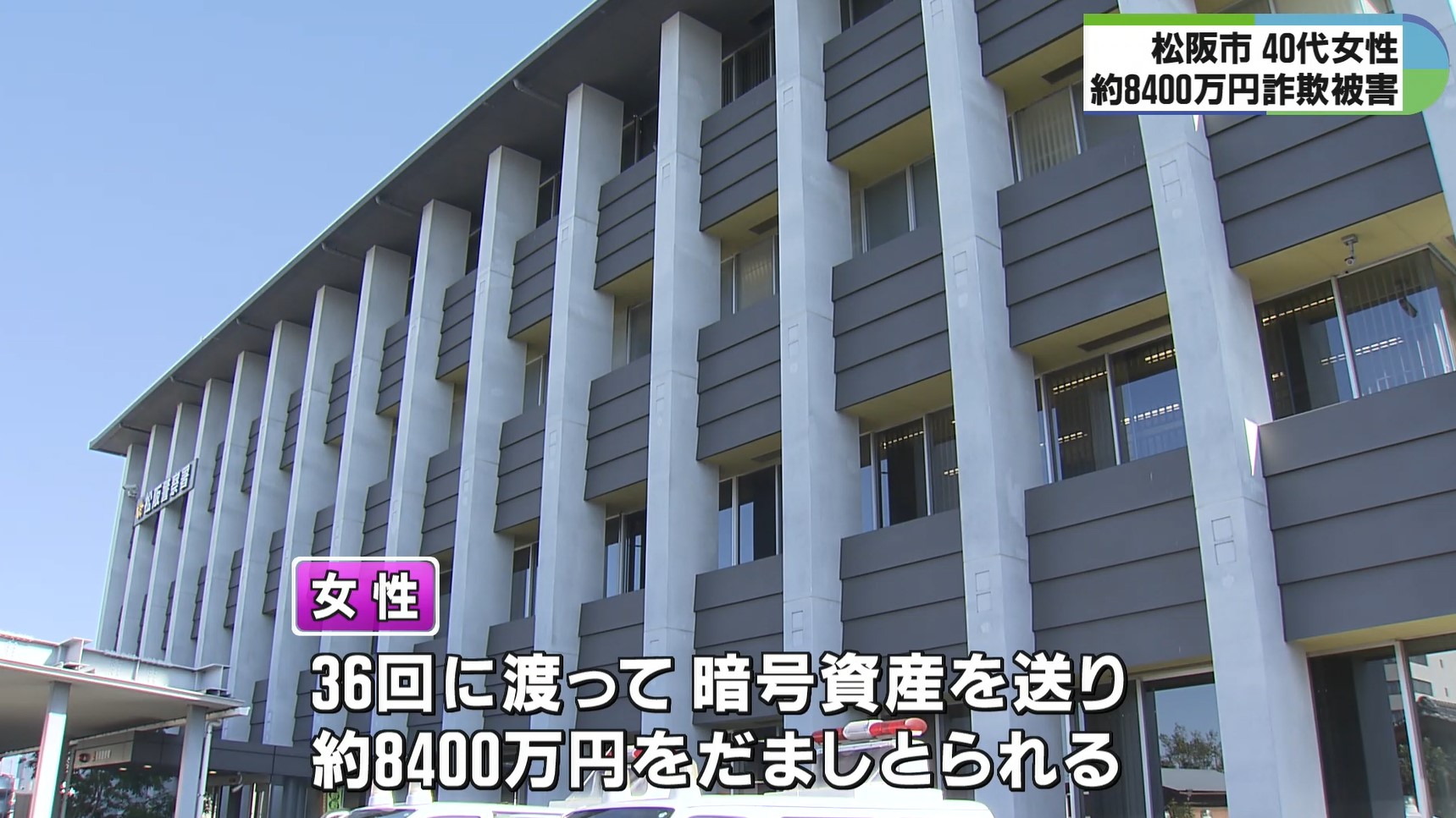 三重県松阪市に住む40代の女性が、警察官を名乗る男に暗号資産を送るように指示され、約8400万円をだまし取られました。