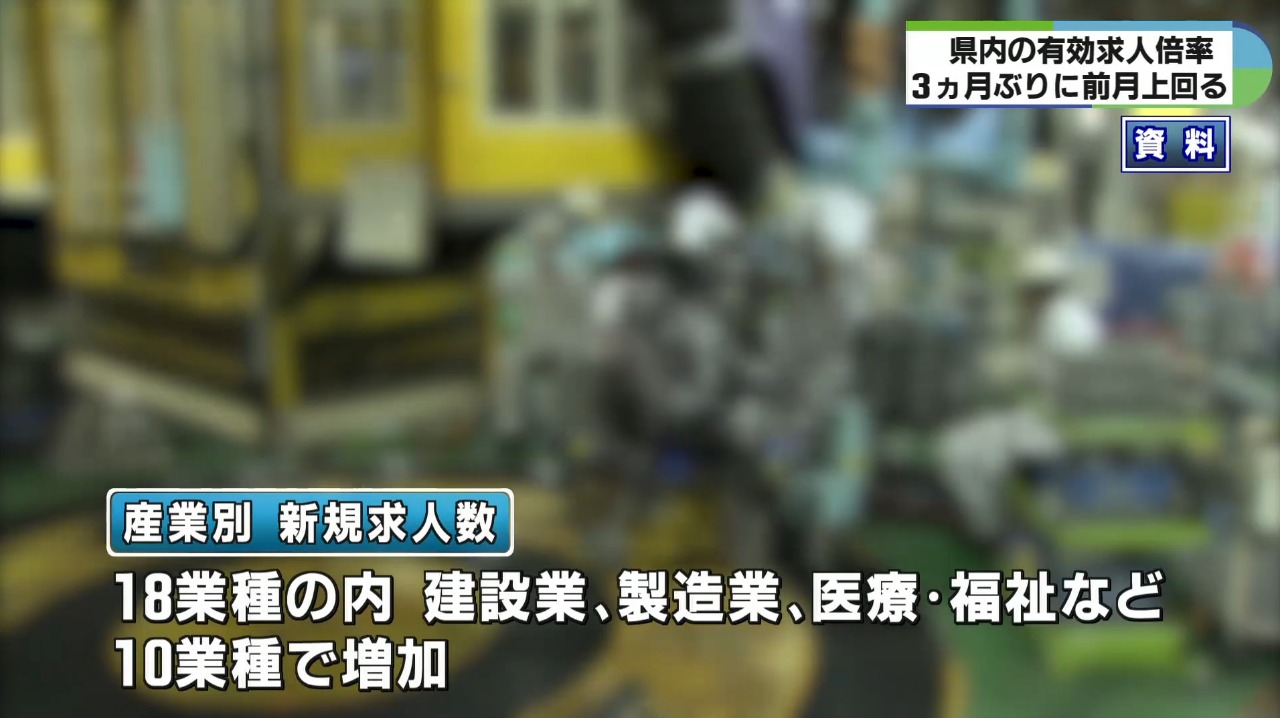業種別では慢性的な人手不足を背景に、18業種の内建設業や製造業、医療・福祉など10の業種で新規の求人数が増加したということです。