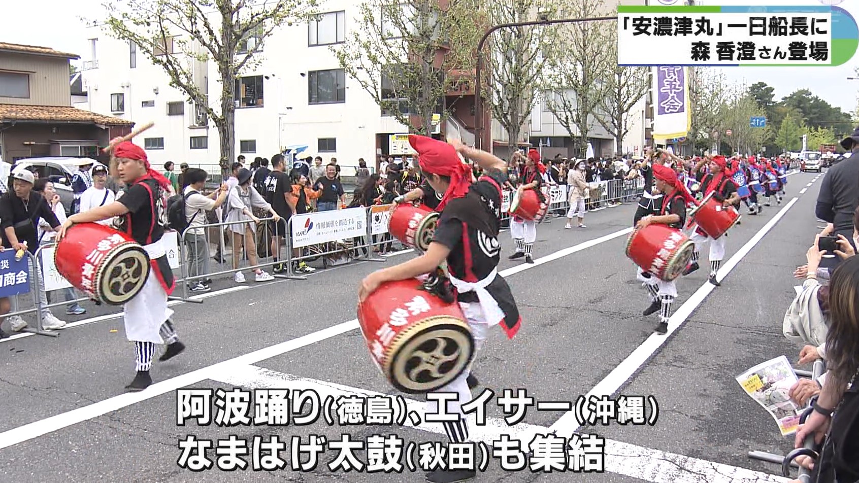 12日の津まつりは、地元の園児らによるおみこしや全国から集まったよさこいチームらによる大パレードが行われたほか、今年は徳島の阿波踊りや沖縄のエイサー、秋田のなまはげ太鼓も集結しそれぞれのまつりで訪れた人たちを魅了しました。