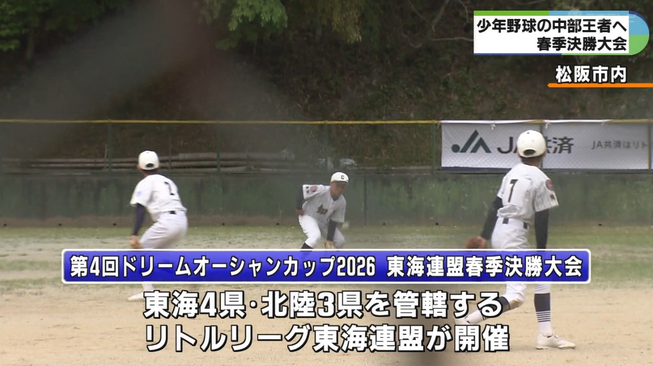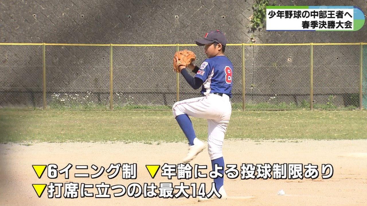 三重や愛知、福井など中部6県で行われた予選を勝ち抜いたチームによる少年野球の春季決勝大会が、三重県松阪市内で行われ青空のもと熱戦が繰り広げられました。