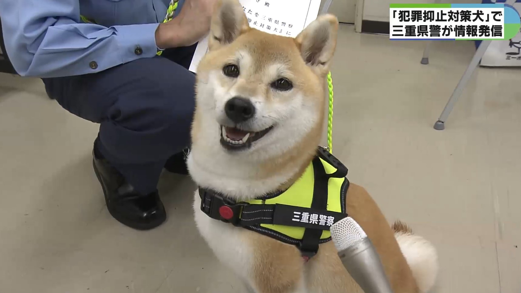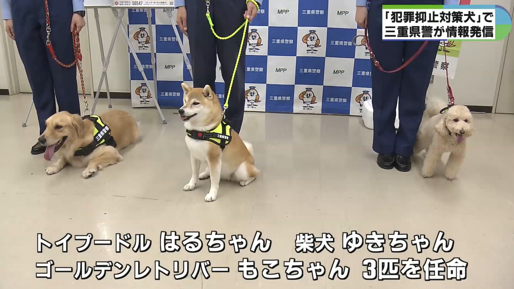 動物がもつ親しみやすさを生かし、犯罪抑止の情報を県民に広く届けようと、14日、三重県警察本部で犯罪抑止対策犬の任命式が行われました。