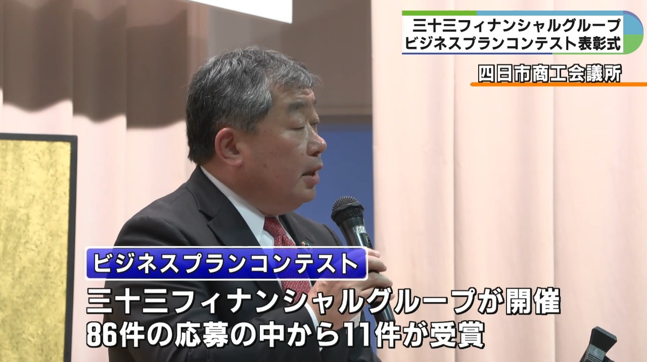 三十三フィナンシャルグループが、三重県内の起業家らから新しいビジネスプランを募るビジネスコンテストを開き、16日に表彰式とビジネスプランの発表などを行いました。
