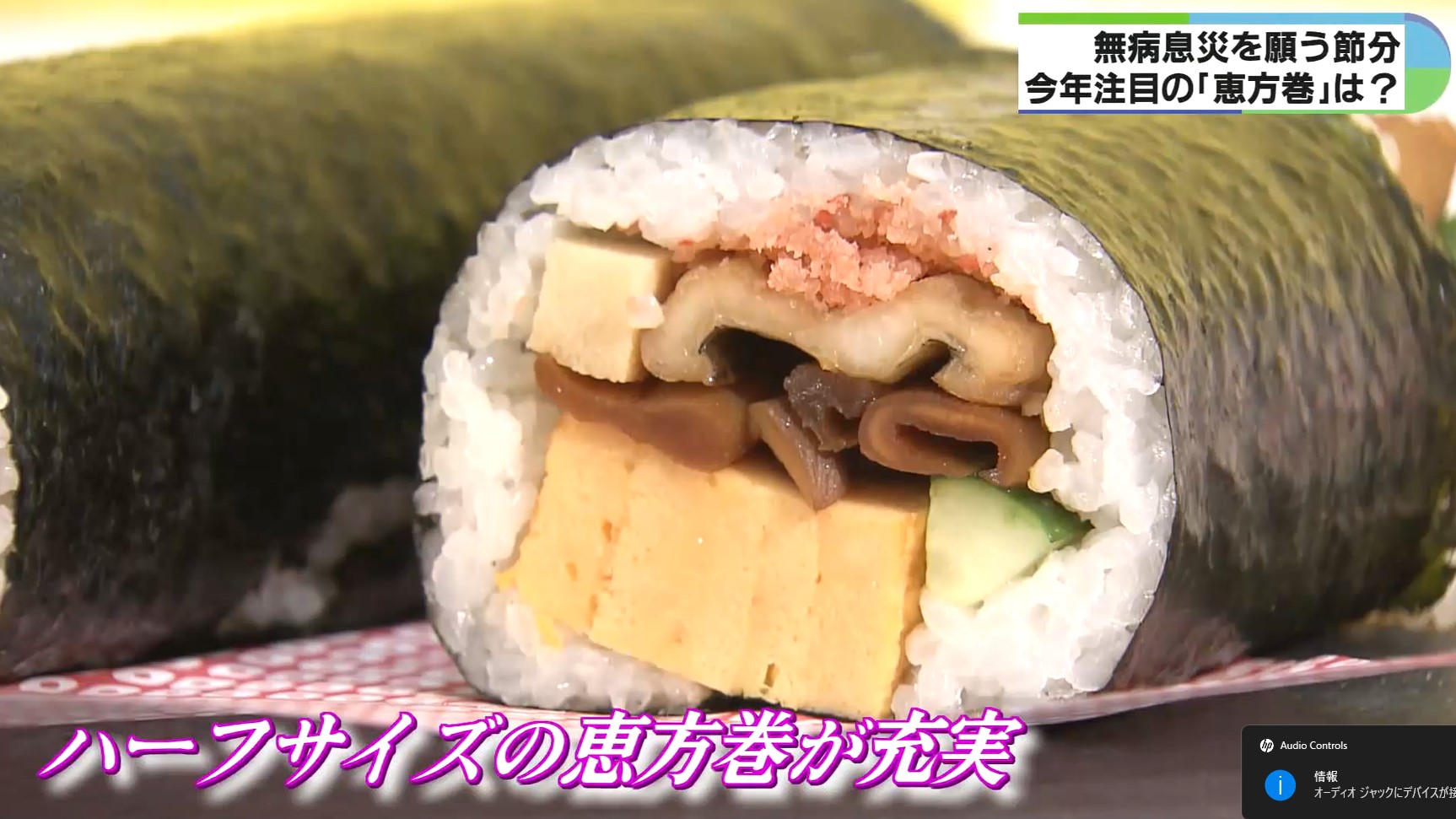 今年はハーフサイズの恵方巻が充実したほか、家族や友人とシェアして楽しめる巻き寿司を詰め合わせたパーティーセットや、2026年にちなみ26種類の具材を巻いた重さ1.7キロの太巻きなどが新登場しました。