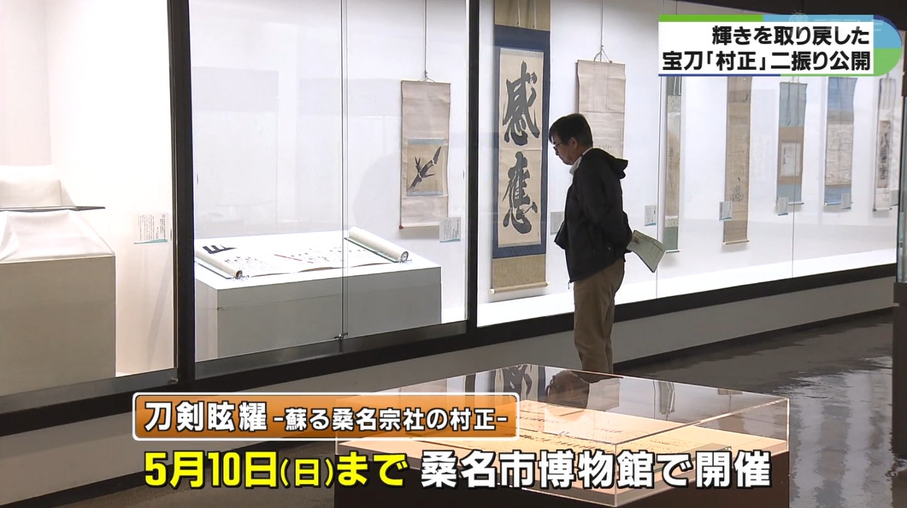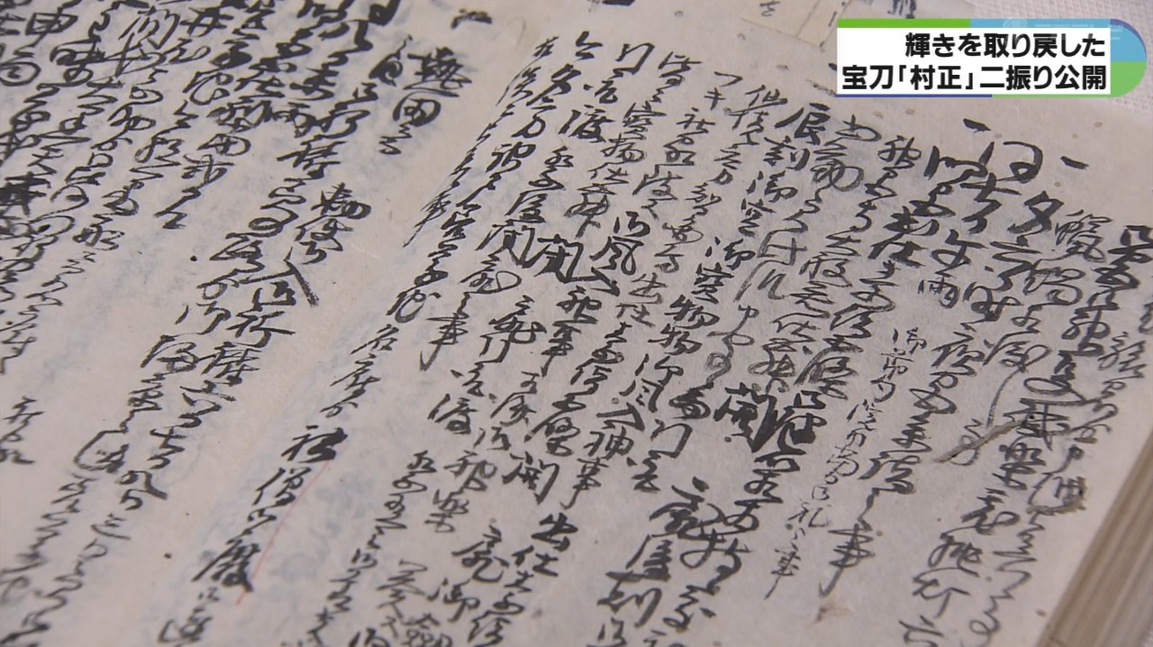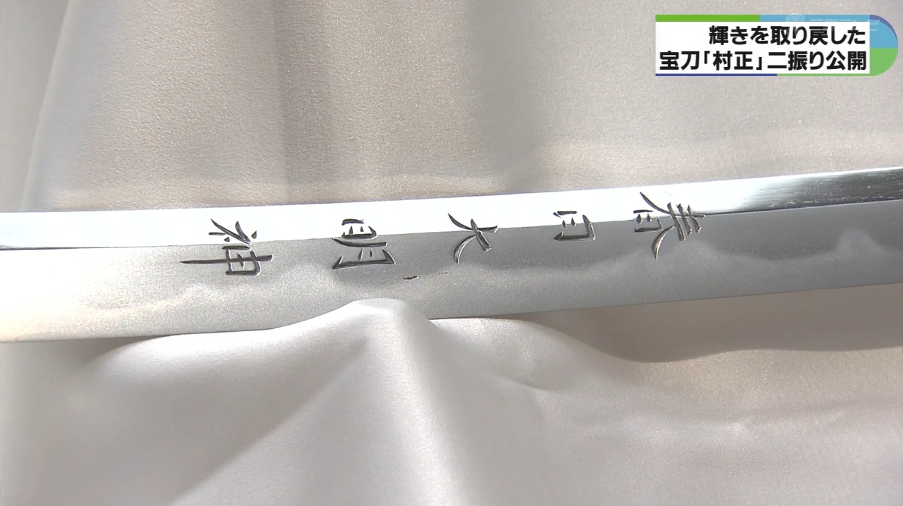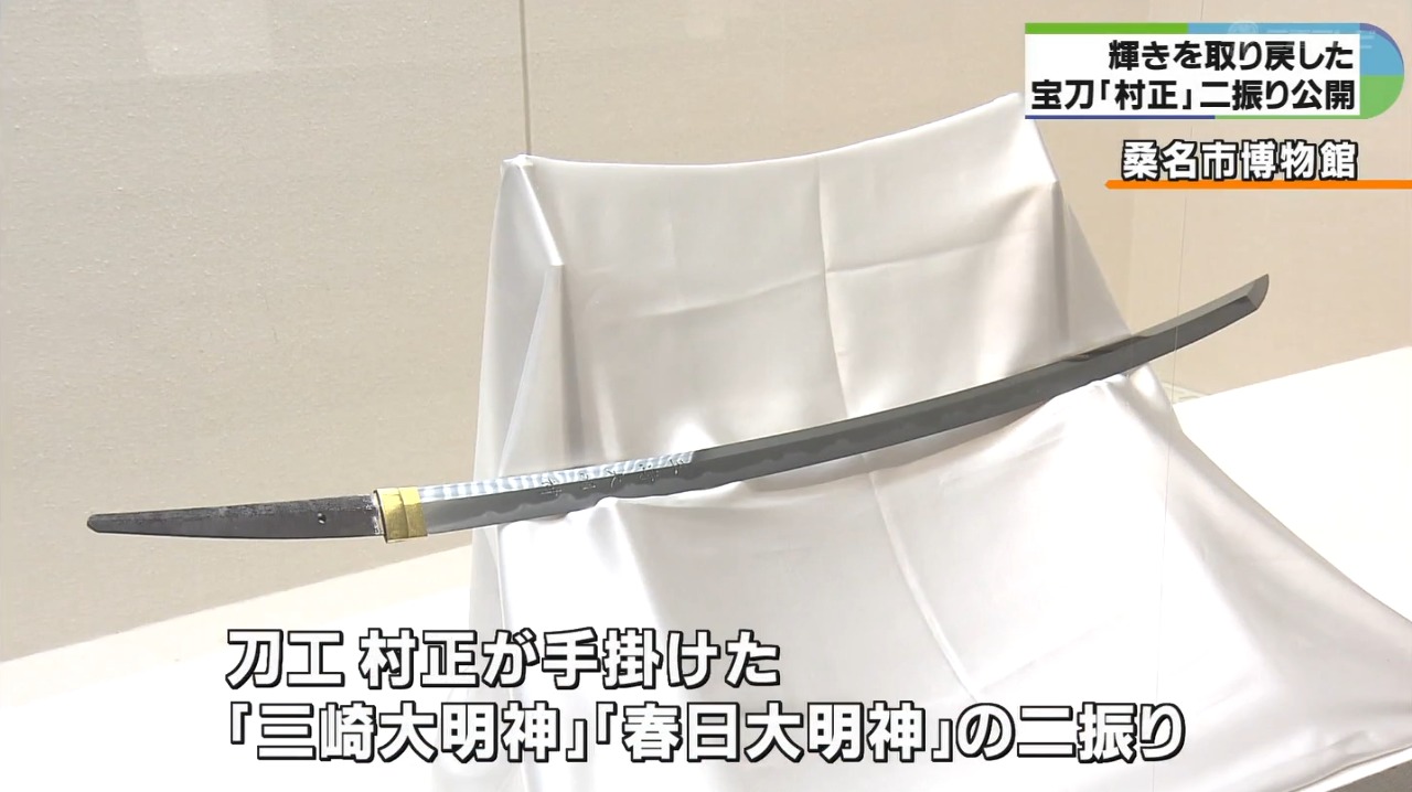 戦火から守るために刀身に塗られていた漆を研ぎ落とし、約80年ぶりに輝きを取り戻した宝刀「村正」が、三重県の桑名市博物館で展示されています。