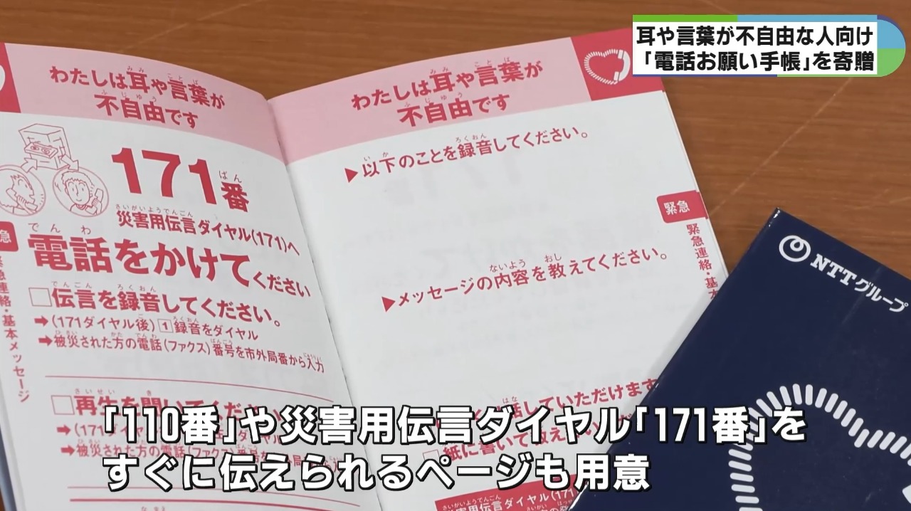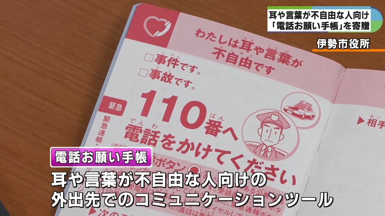 耳や言葉が不自由な人のためのコミュニケーションツール「電話お願い手帳」が、NTT西日本三重支店から伊勢市に寄贈されました。
