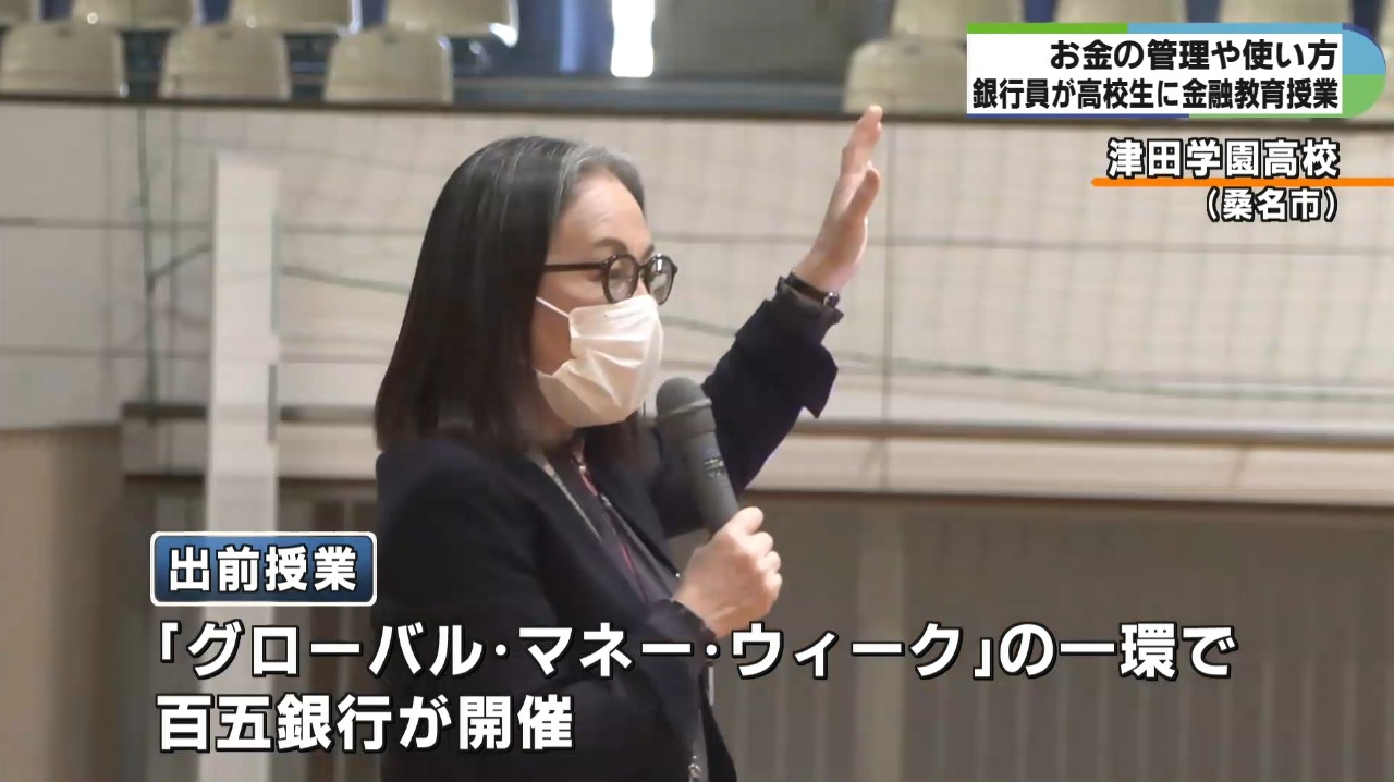 将来を見据えたお金の管理や使い方について銀行員が講師となって教える出前授業が10日、三重県桑名市の津田学園高校で行なわれました。