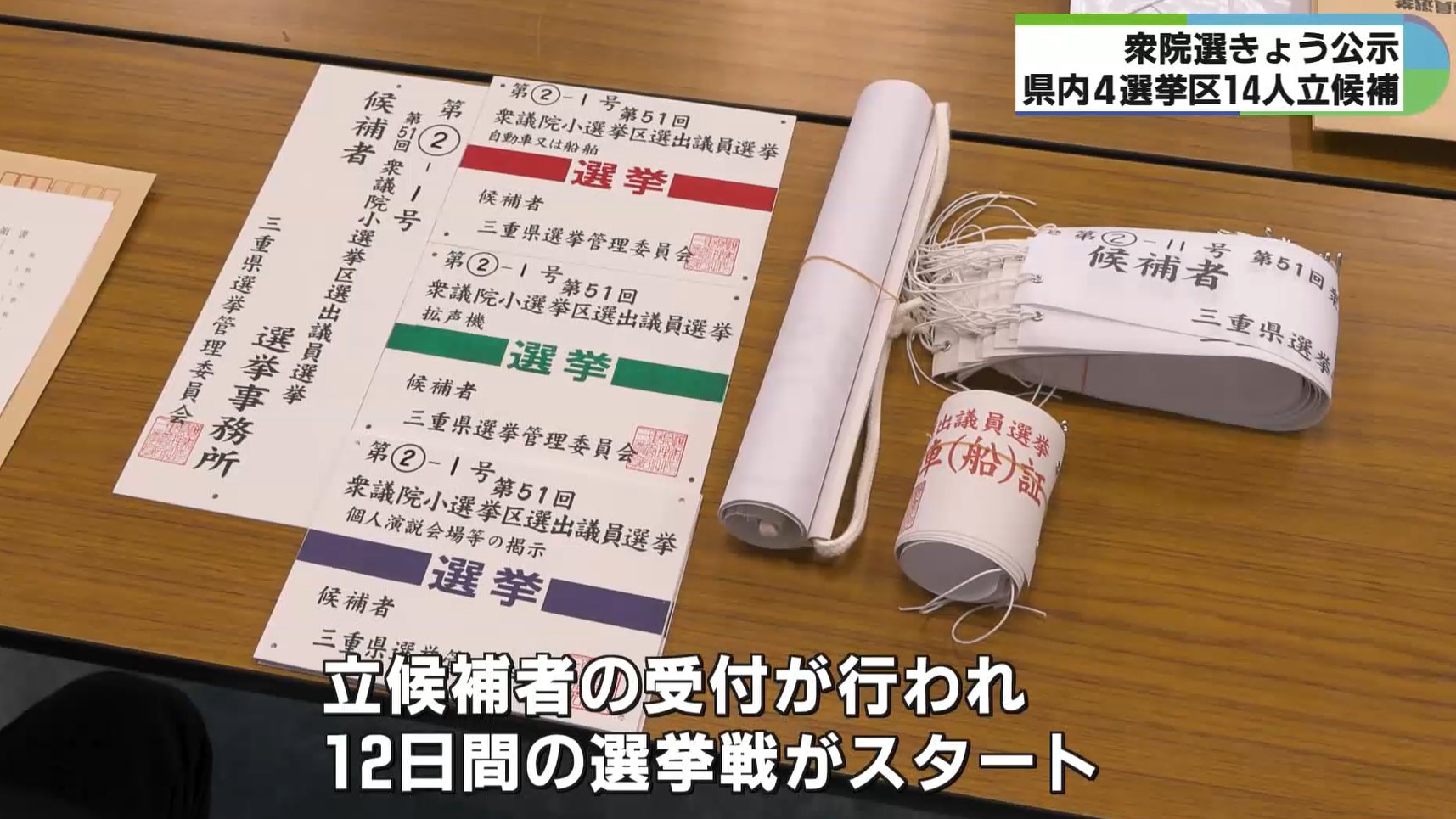 衆院選が27日公示され、三重県内4つの選挙区に14人が立候補しました。