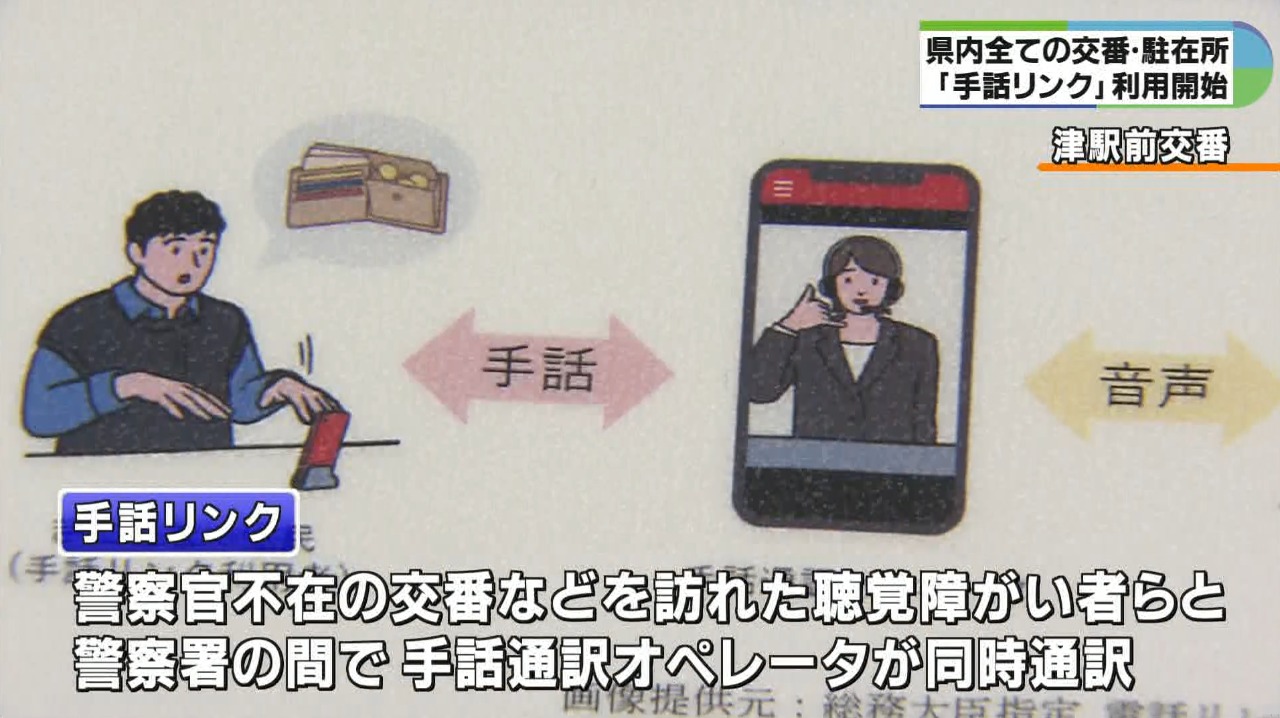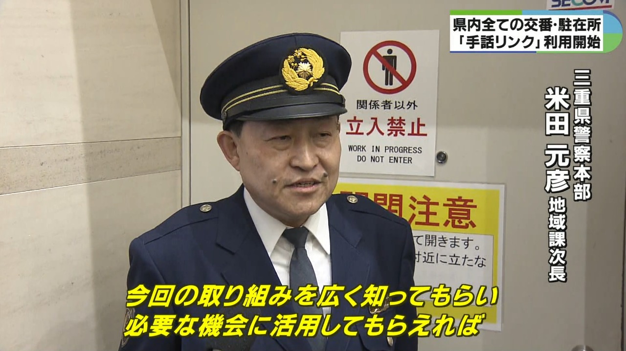 警察官が不在の場合でも聴覚や言語などに障がいがある人に対して対応できるよう、手話通訳を介して警察署員と会話ができるシステムの利用が、23日から三重県内すべての交番と駐在所で始まりました。