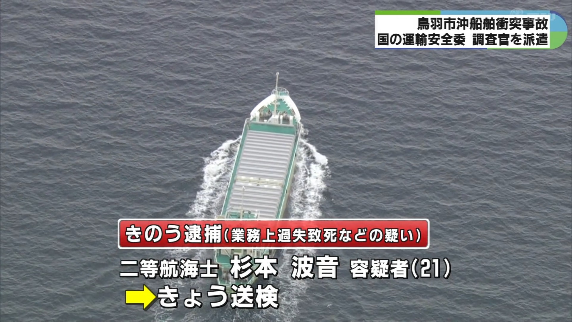 鳥羽海上保安部は21日、業務上過失致死と業務上過失往来危険の疑いで、貨物船を操船していた二等航海士の杉本波音容疑者(21)を逮捕。22日、津地方検察庁に身柄を送りました。