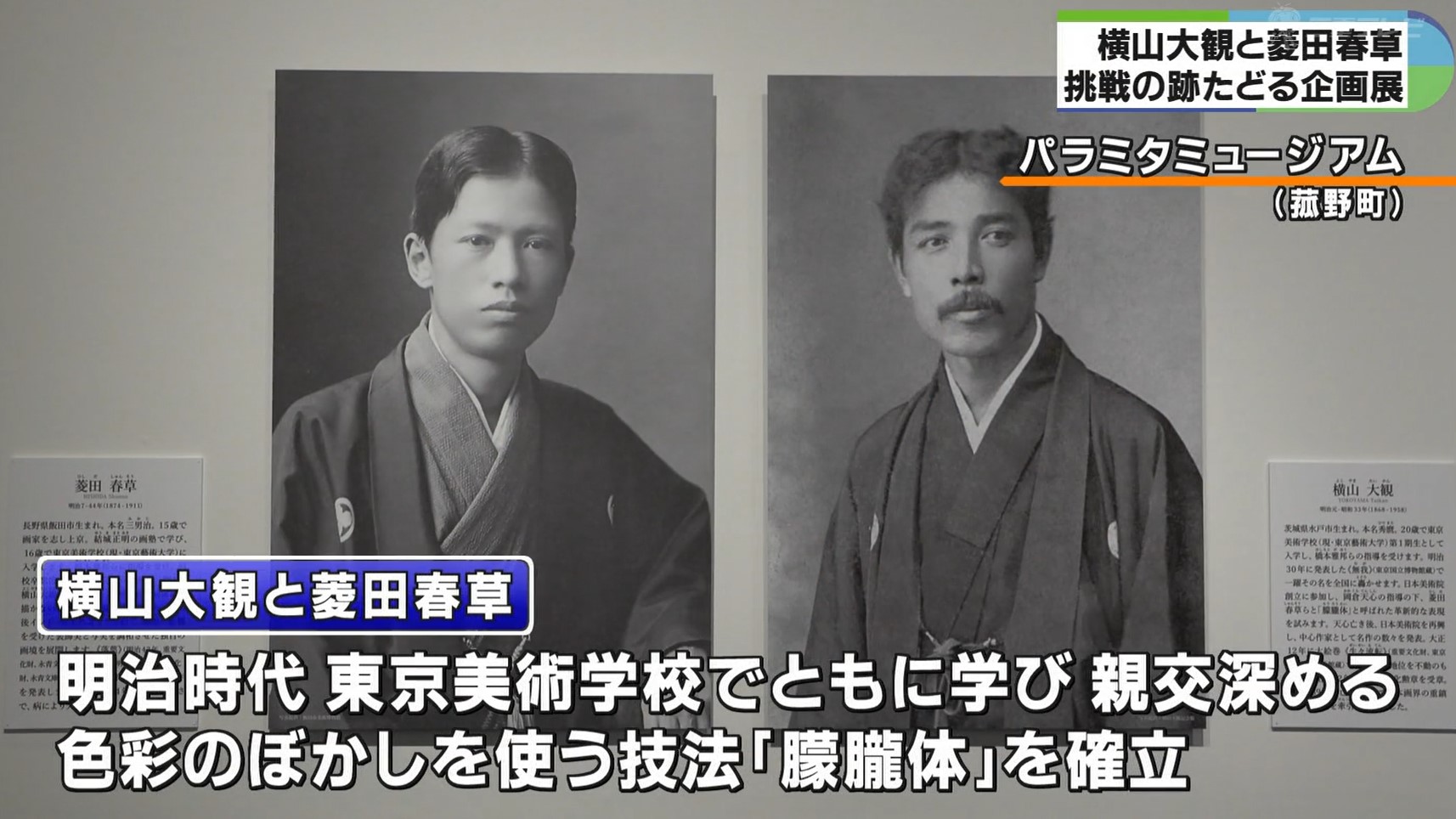 明治以降の近代日本画界をけん引してきた横山大観と菱田春草の挑戦の跡をたどる企画展が、三重県菰野町のパラミタミュージアムで開かれています。