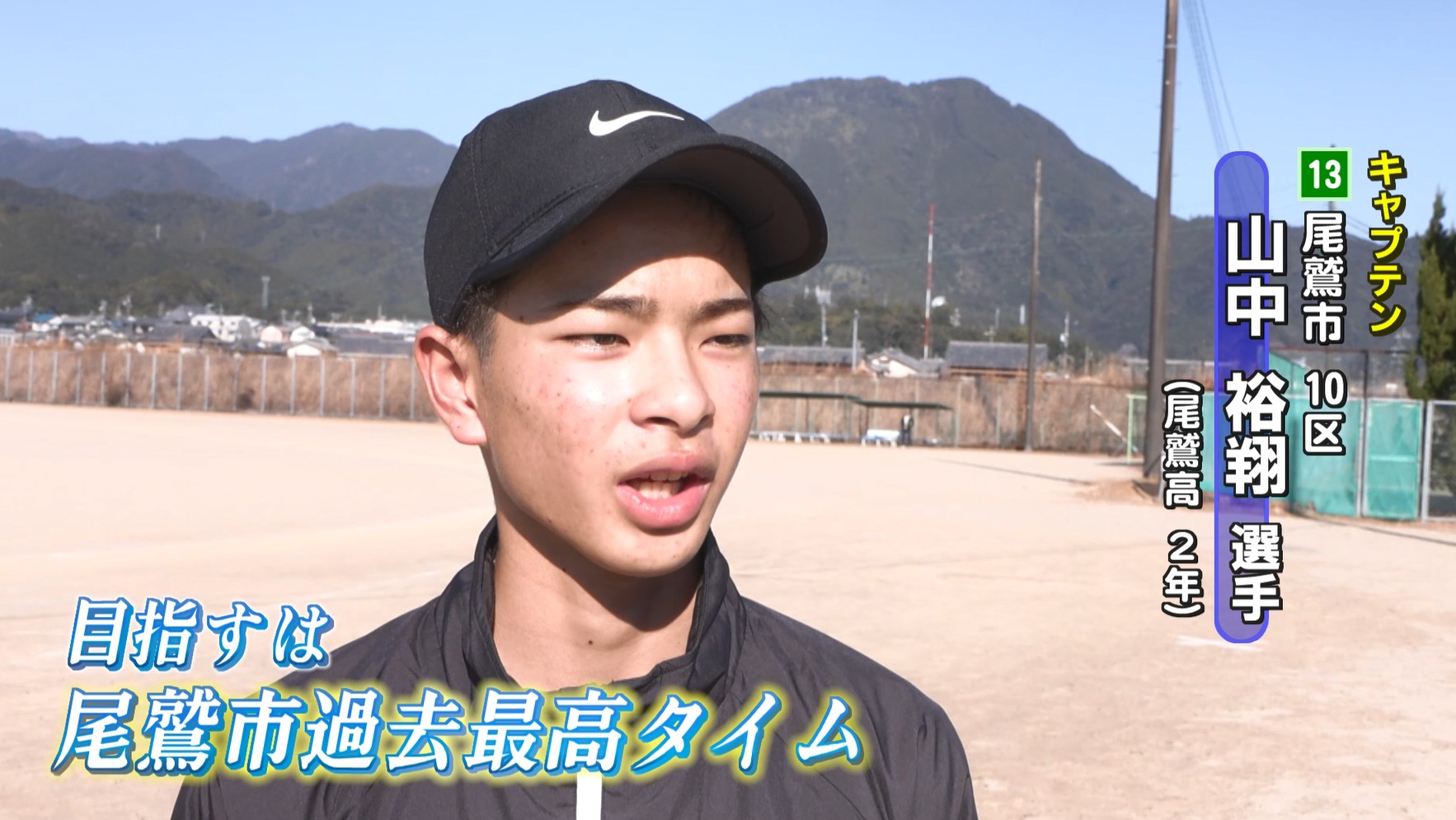 山中選手は「前の9人がつないでくれたタスキを責任を持って笑顔でゴールするのが目標。チームとしては一人一人が最後まで笑顔で走り抜いて尾鷲市過去最高のタイムをたたき出したい」と意気込みを語りました。