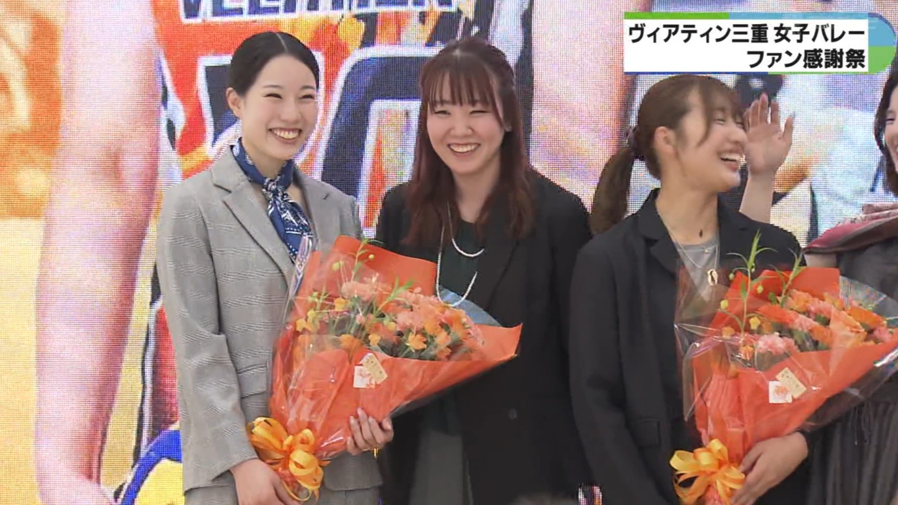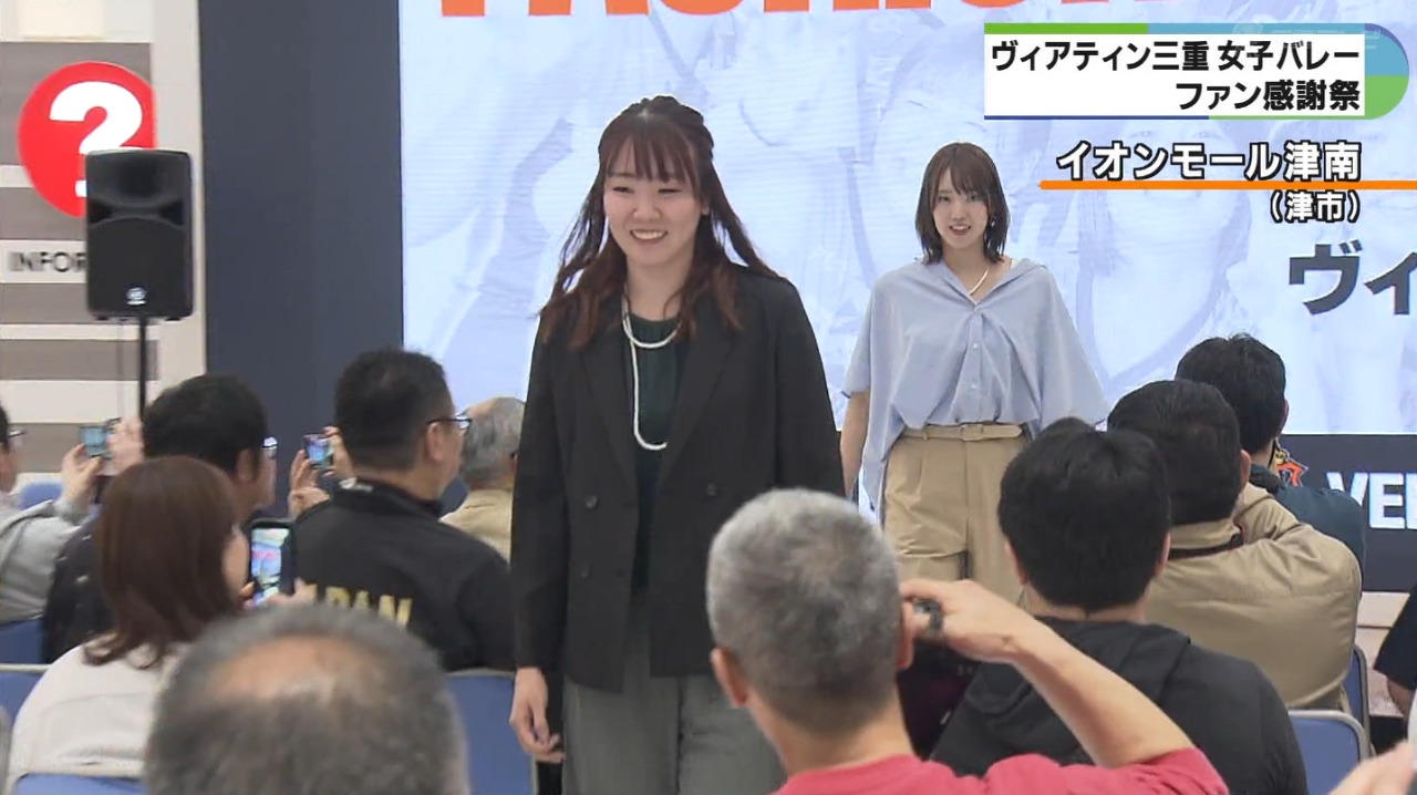 三重県津市をホームタウンに活動するヴィアティン三重女子バレーボールチームが25日、津市内のショッピングセンターでファン感謝祭を開きました。