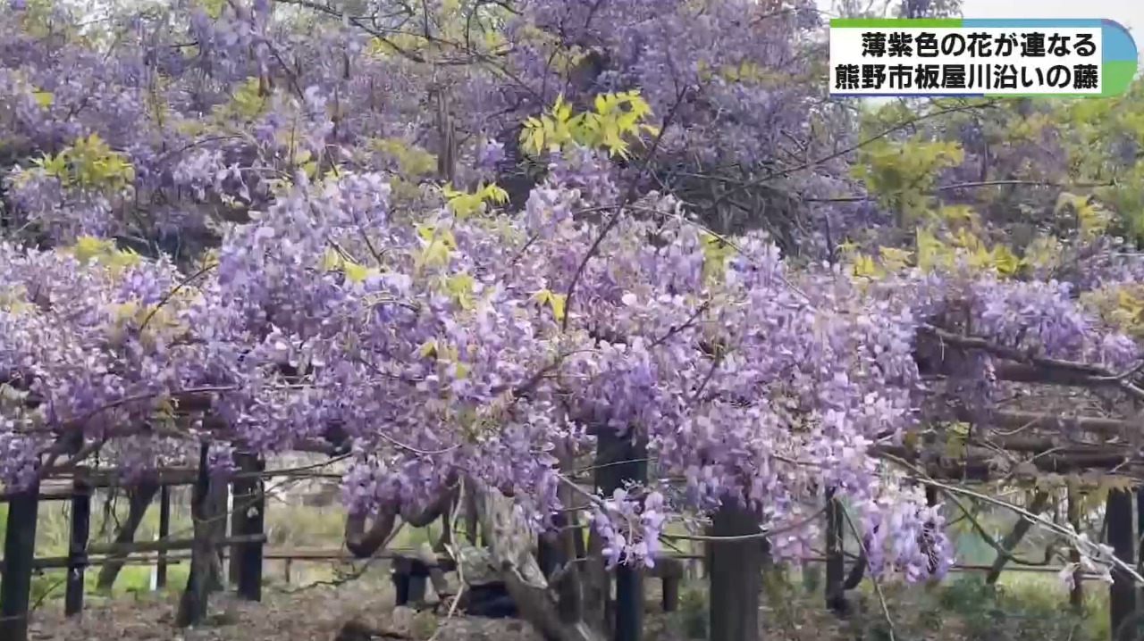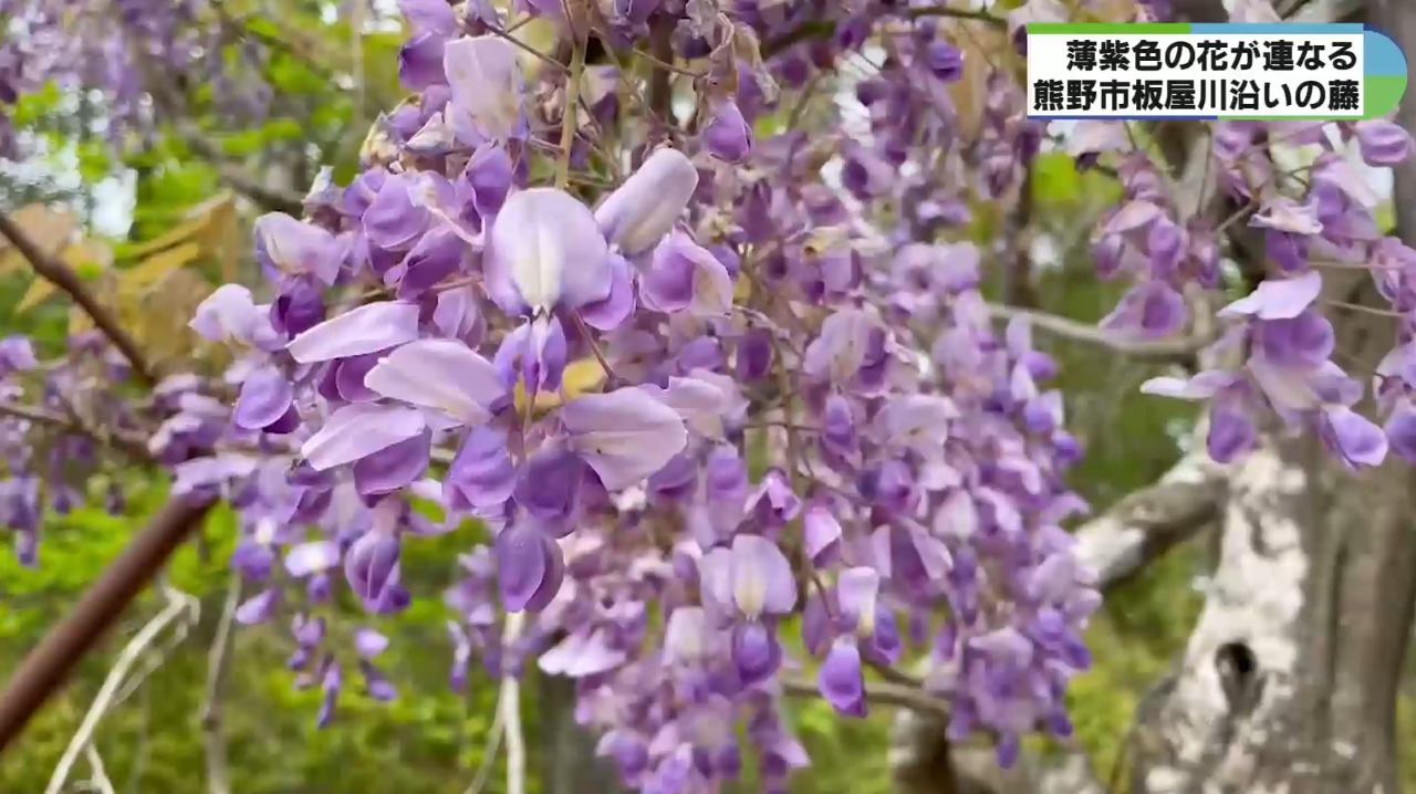 三重県熊野市紀和町の板屋川沿いで、フジの花が見頃を迎えています。
