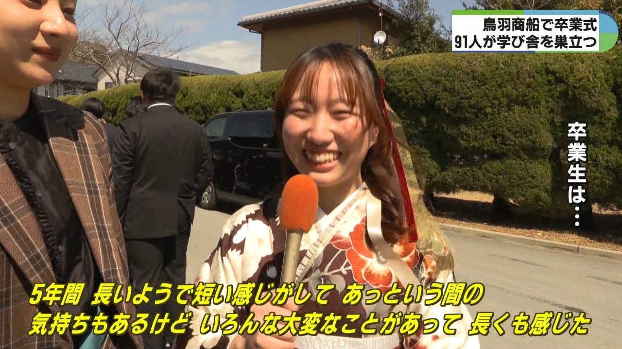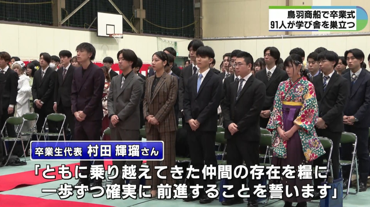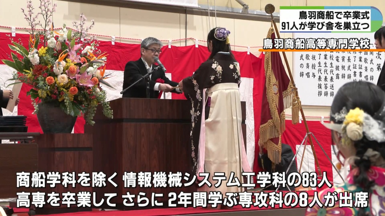 三重県鳥羽市の鳥羽商船高等専門学校で19日、卒業式があり、卒業生91人が学び舎を巣立ちました。