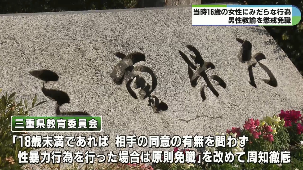 三重県教育委員会は、去年に当時16歳の女性に対し、みだらな行為を行ったとして逮捕・書類送検された男性教諭を、24日付けで懲戒免職としました。