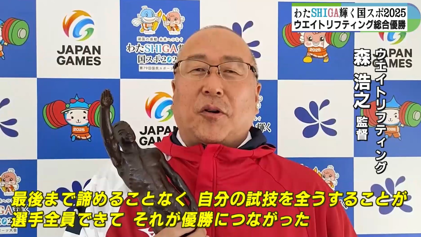 ウエイトリフティングの森浩之監督は「最後まで諦めることなく自分の試技を全うすることが選手全員できて、それが優勝につながった」と話しています。