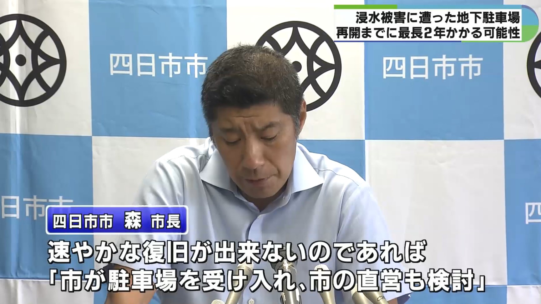 9月の記録的な大雨により浸水被害を受けた四日市市の地下駐車場について、四日市市の森智広市長は、再開までに1年から2年かかる可能性があるという考えを示しました。