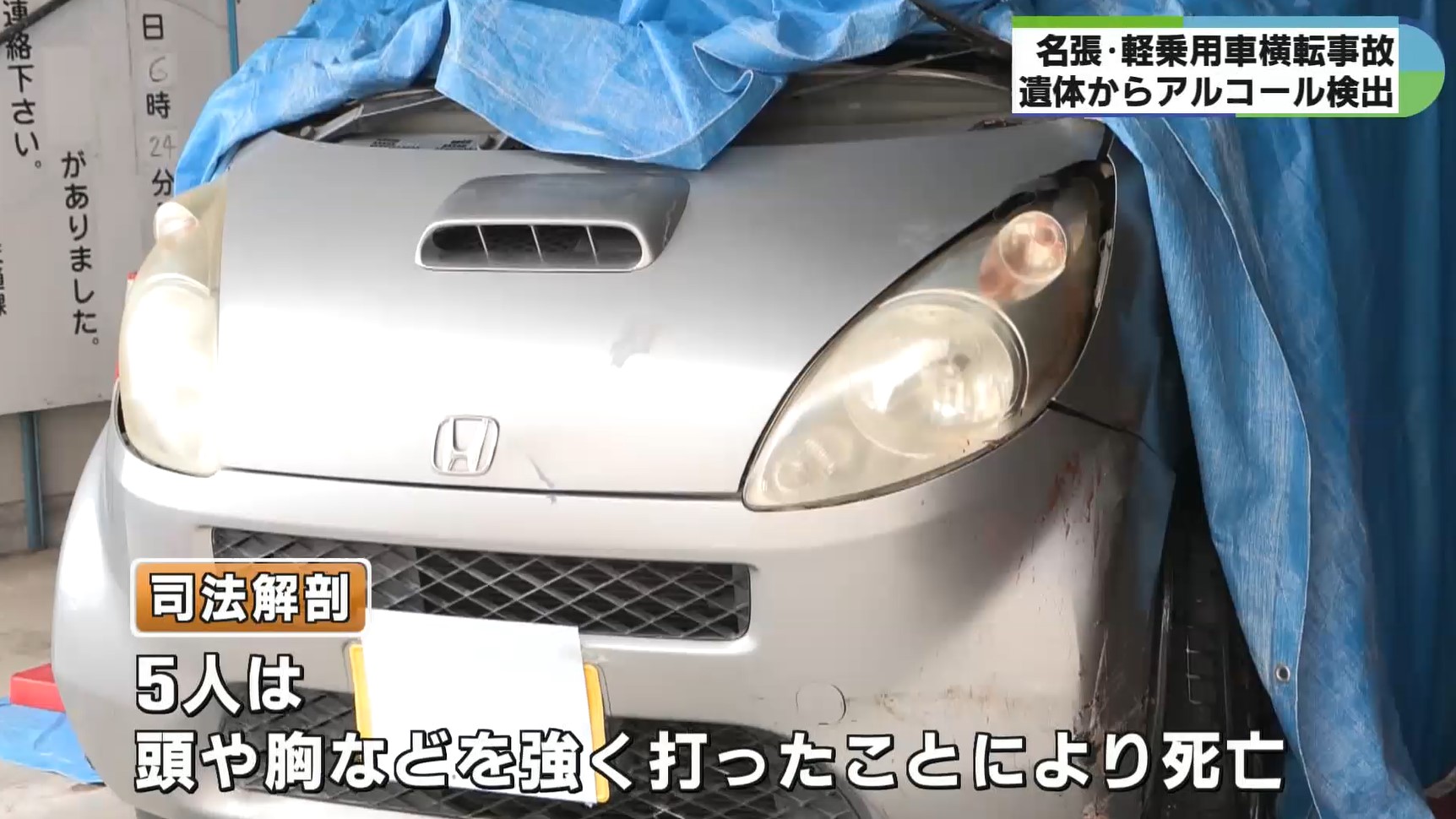 三重県名張市の国道で軽乗用車が横転し5人が死亡した事故で、司法解剖の結果、5人は頭や胸などを強く打ったことにより死亡したことが判明したほか、少なくとも1人からアルコールが検出されたことがわかりました。
