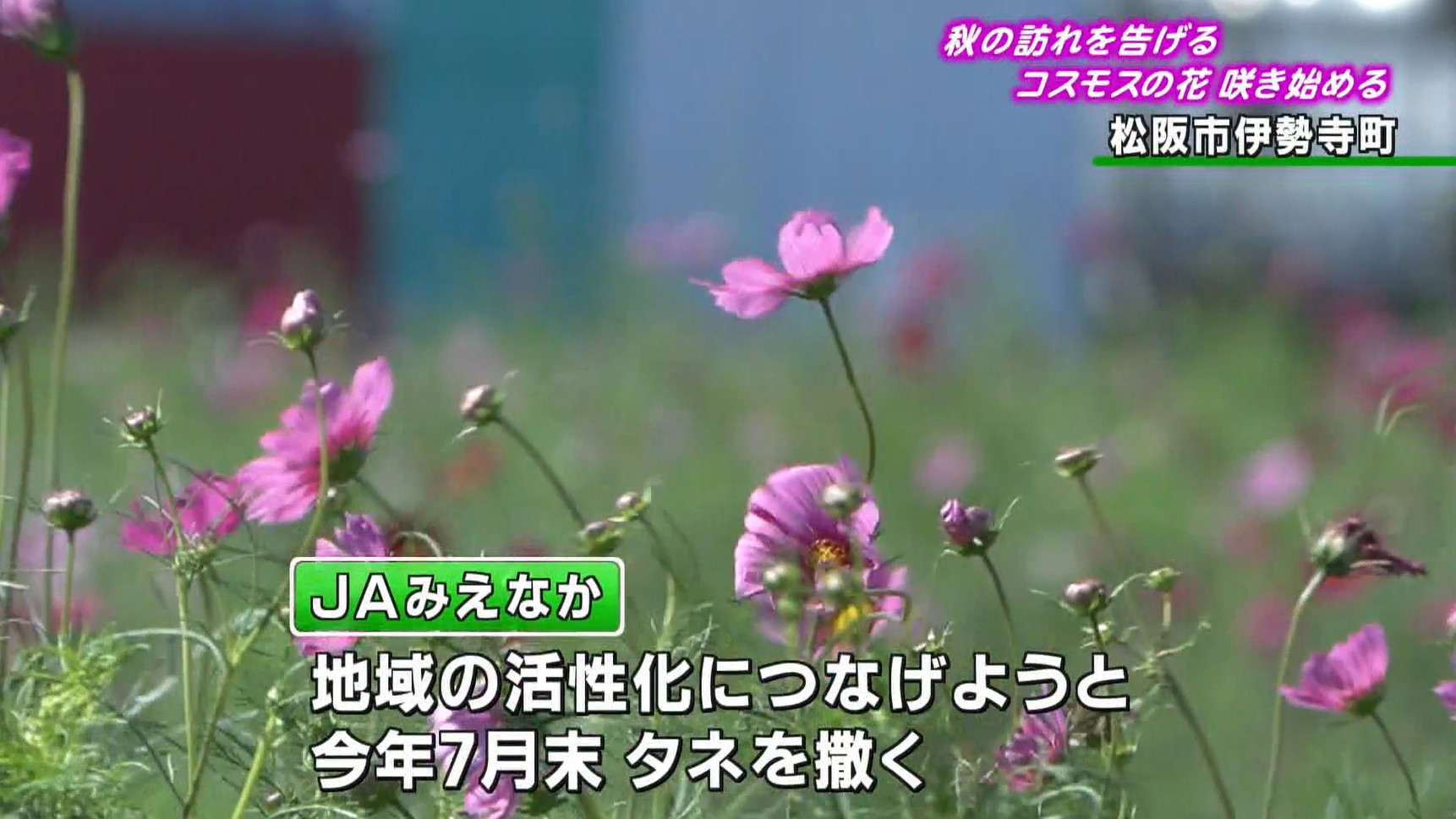 このコスモス畑は「JAみえなか」が地域の活性化につなげようと、2025年7月末にタネを撒いたものです。