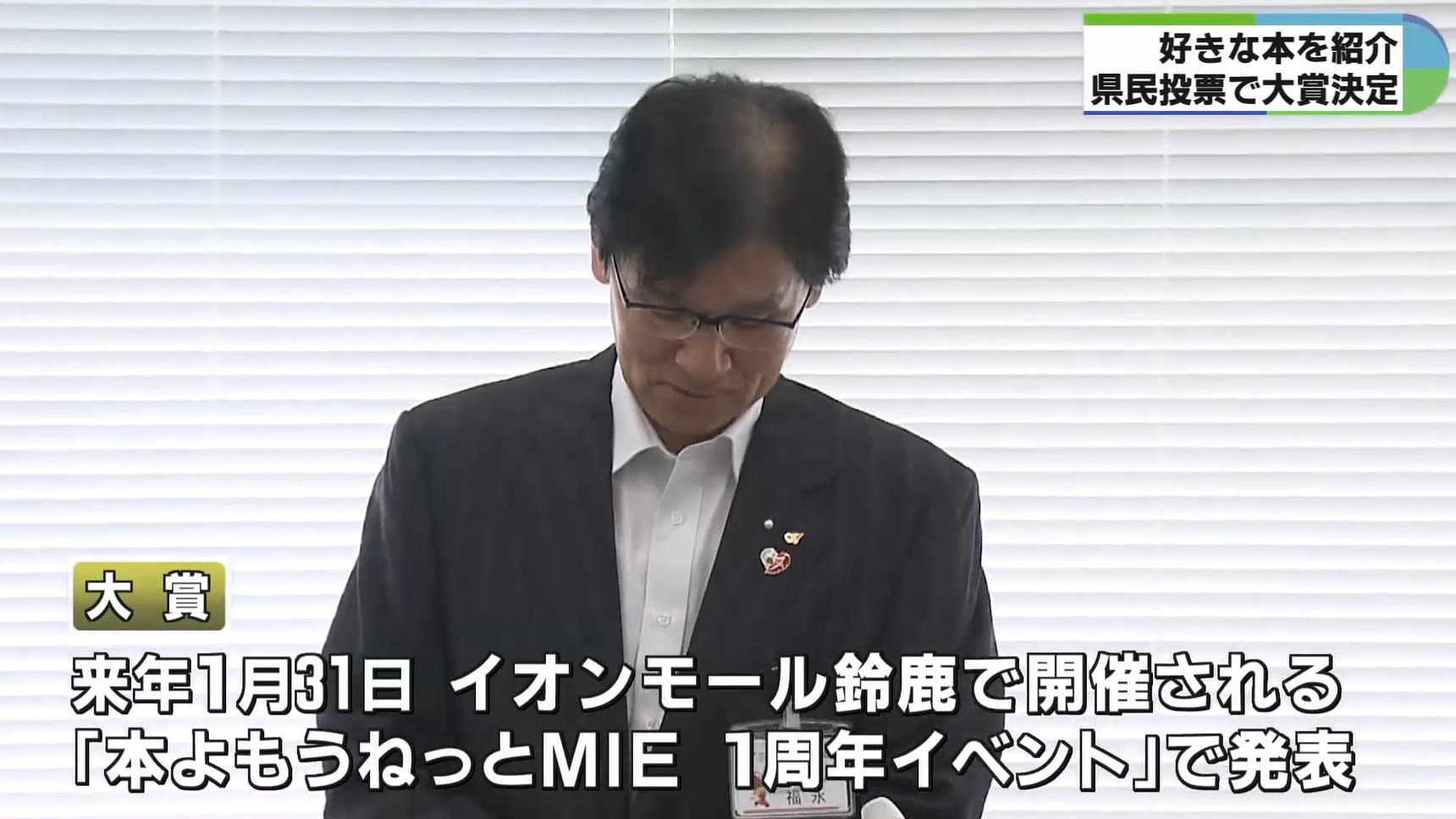 大賞を決める県民投票は今月27日から12月12日まで、ホームページと県立図書館を含む県内3カ所の特設ブースで行われ、来年1月31日に、イオンモール鈴鹿で開催される「本よもうねっとMie1周年イベント」で大賞作品が発表される予定です。