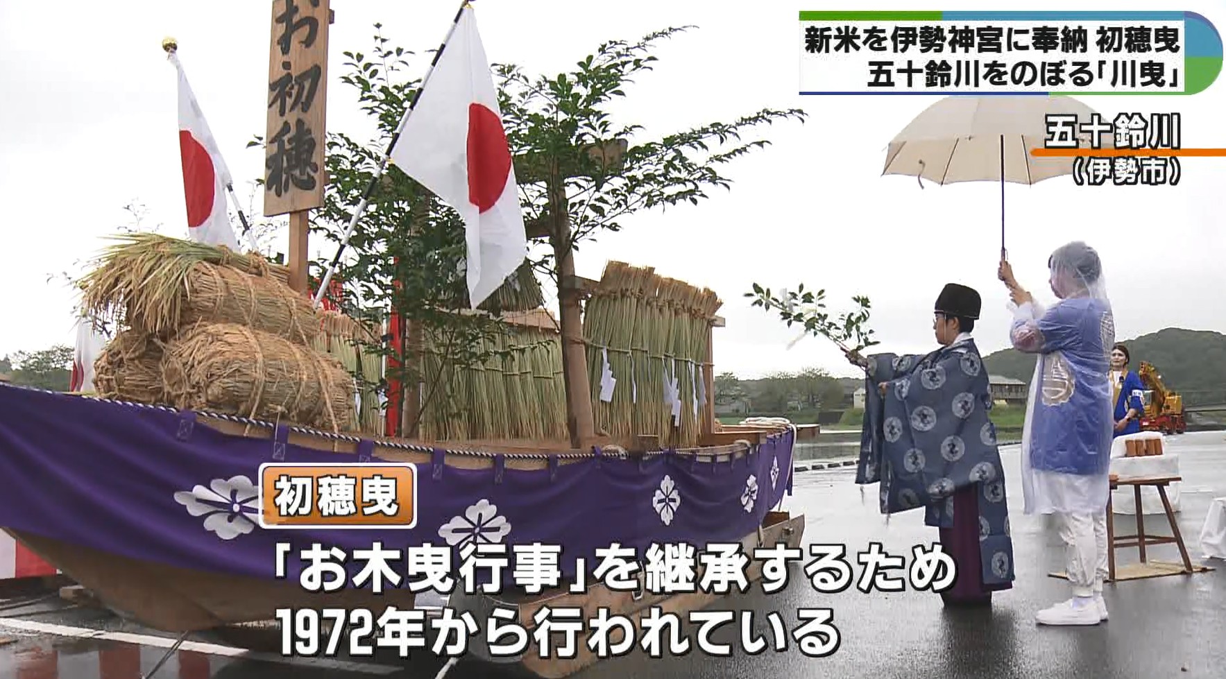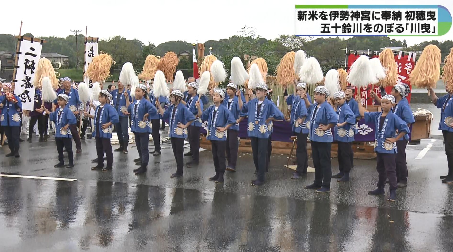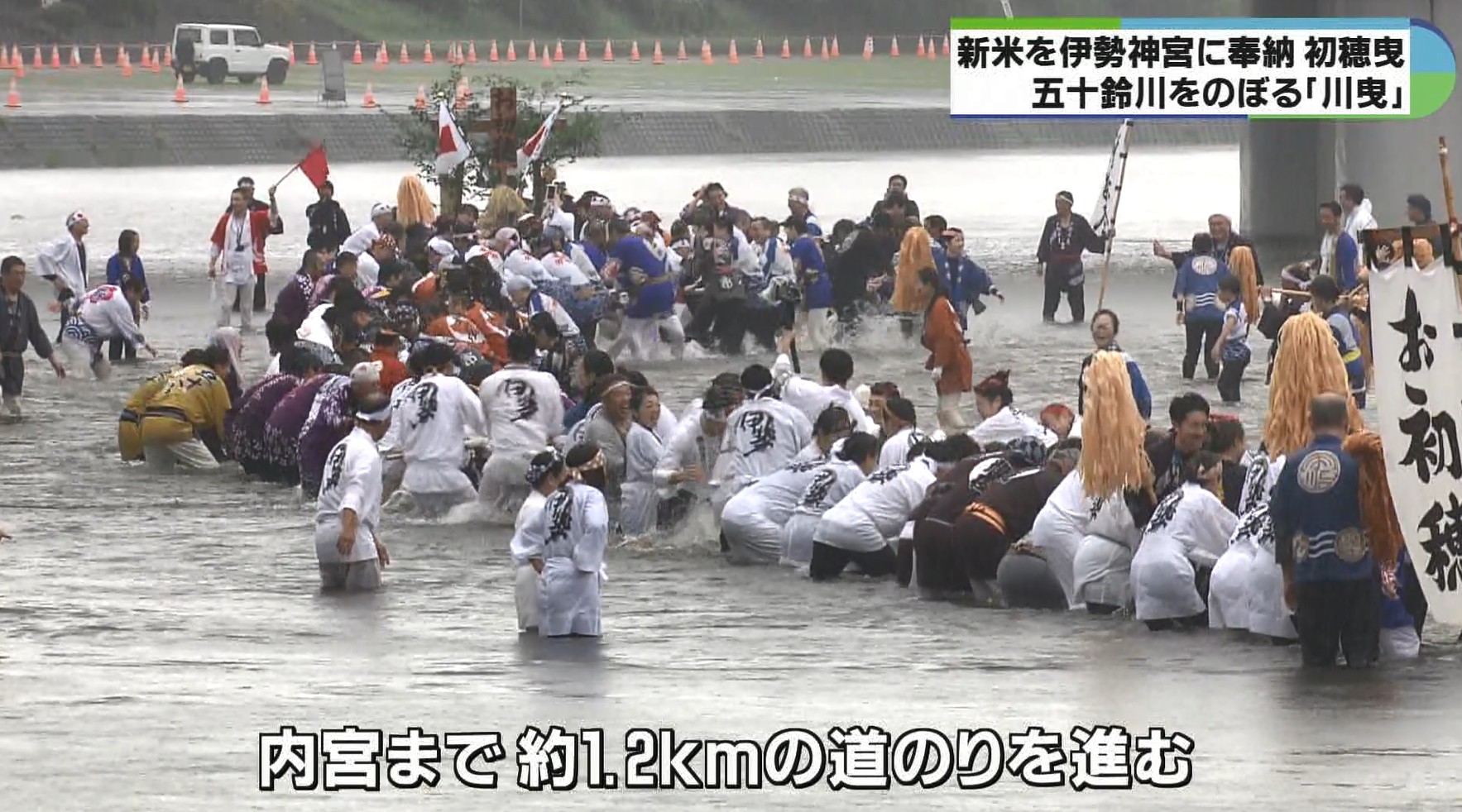 三重県伊勢市では15日から、今年収穫した新米を伊勢神宮に奉納する「初穂曳」が行われていて、16日は、五十鈴川をのぼり内宮に向かう「川曳」が行われました。