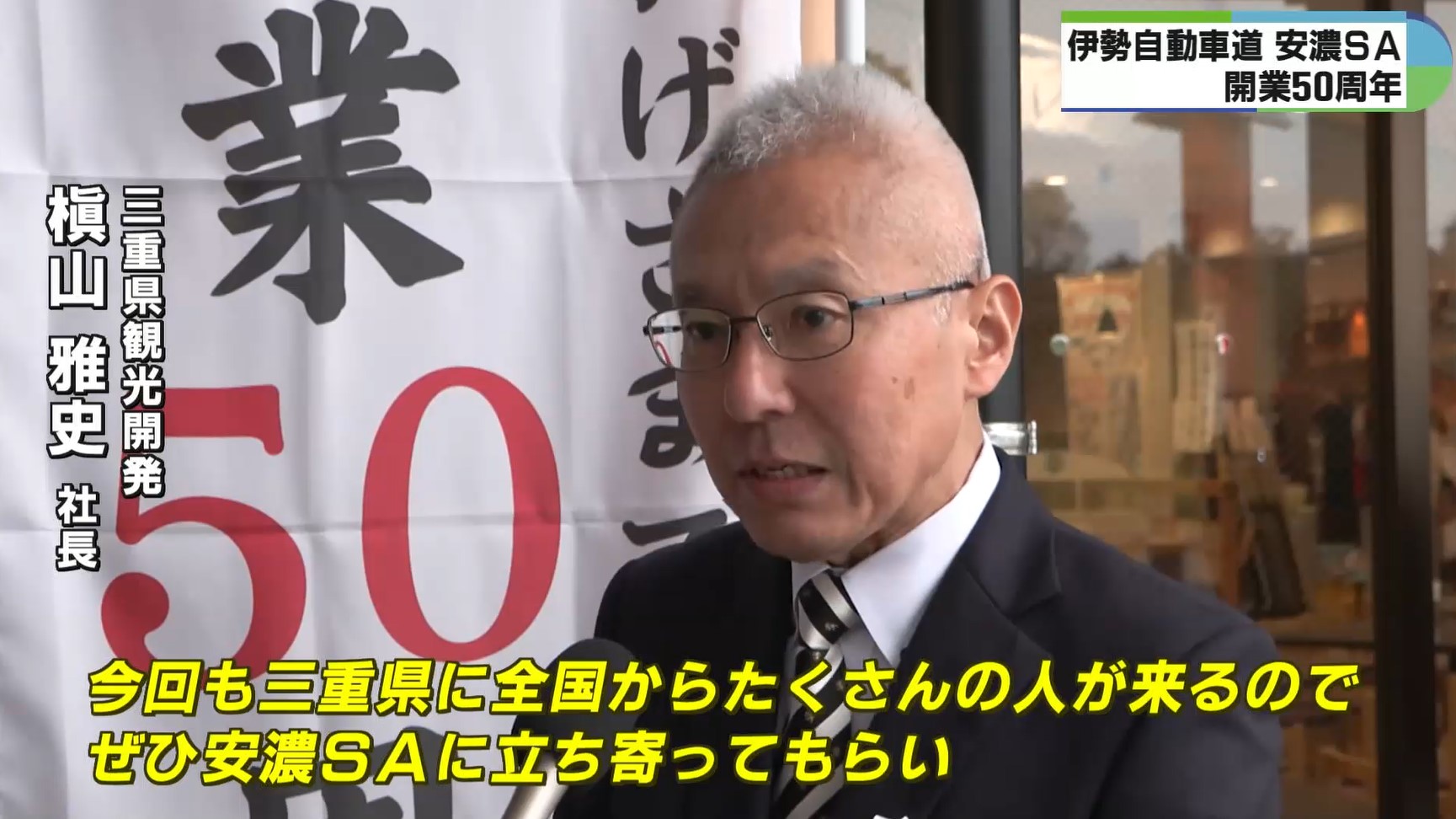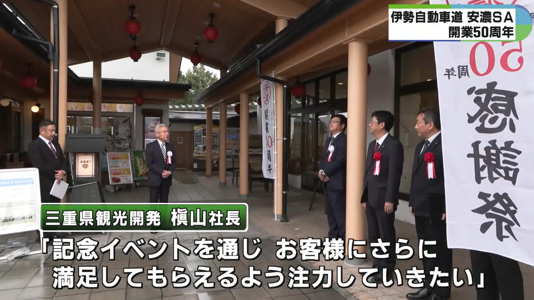 22日、サービスエリアの開業50周年を記念して行われた式典では、安濃SA上り線を運営する三重県観光開発の槇山雅史社長が「記念イベントを通じて、さらにお客様に満足いただけるよう注力していきたい」と挨拶しました。