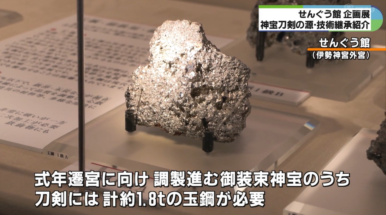 伊勢神宮の式年遷宮に向けて、神様に奉納する御神宝。伊勢神宮・外宮にある「せんぐう館」では、奉納される刀剣の原料や技術の継承に焦点を当てた企画展が開かれています。