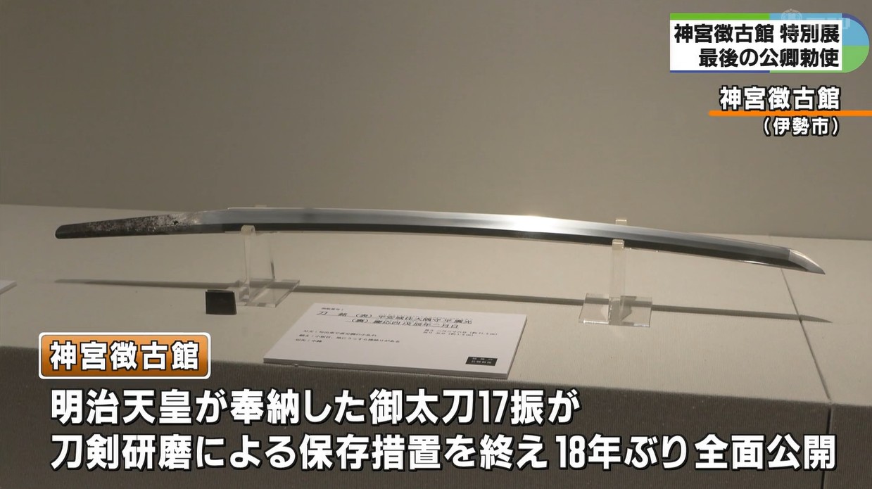 また、伊勢市にある神宮徴古館では、明治天皇が奉納した御太刀・17振が刀剣研磨による保存措置を終え、18年ぶりに全面公開されています。