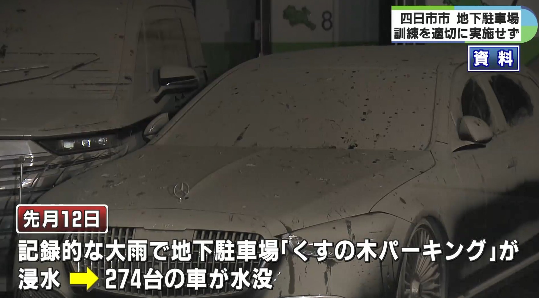 四日市市では9月12日の記録的な大雨により、市の中心部にある地下駐車場「くすの木パーキング」が浸水し、274台の車が水没しました。