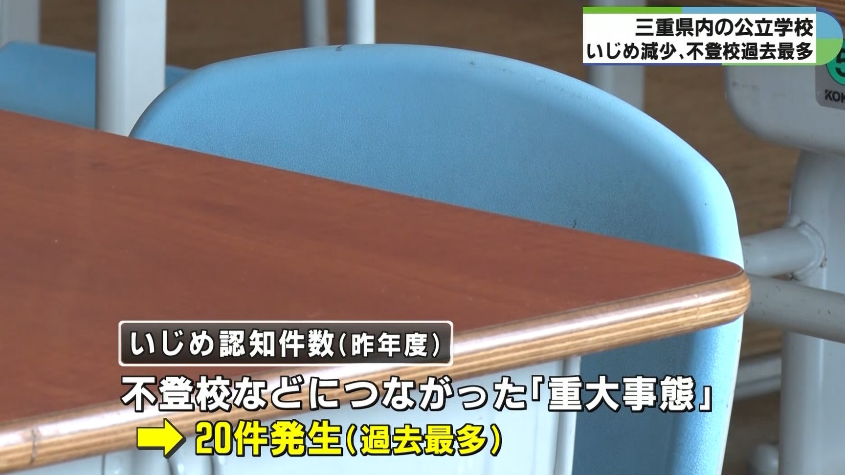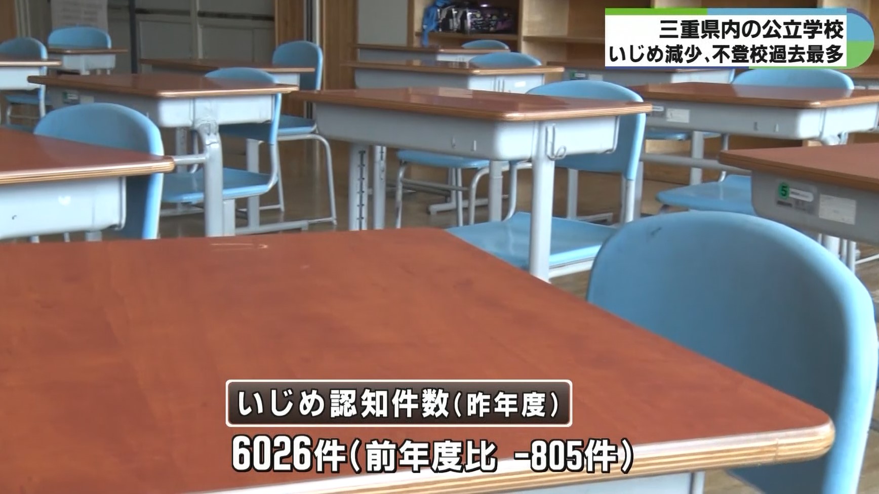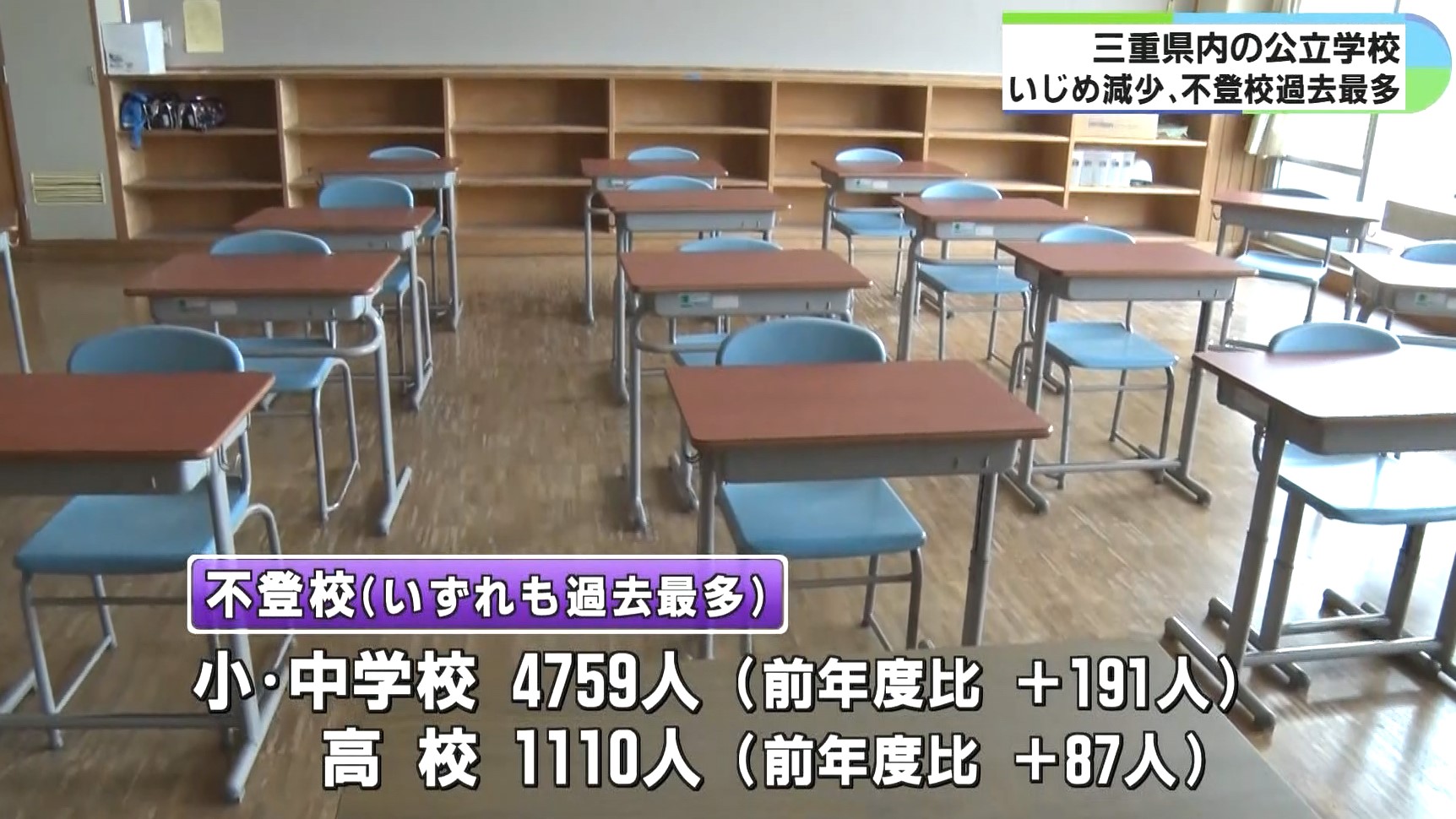 三重県内の公立学校における、昨年度のいじめの認知件数は、前の年度より減少したものの、不登校の児童・生徒の数は過去最多となったことが、三重県教育委員会の調べで分かりました。