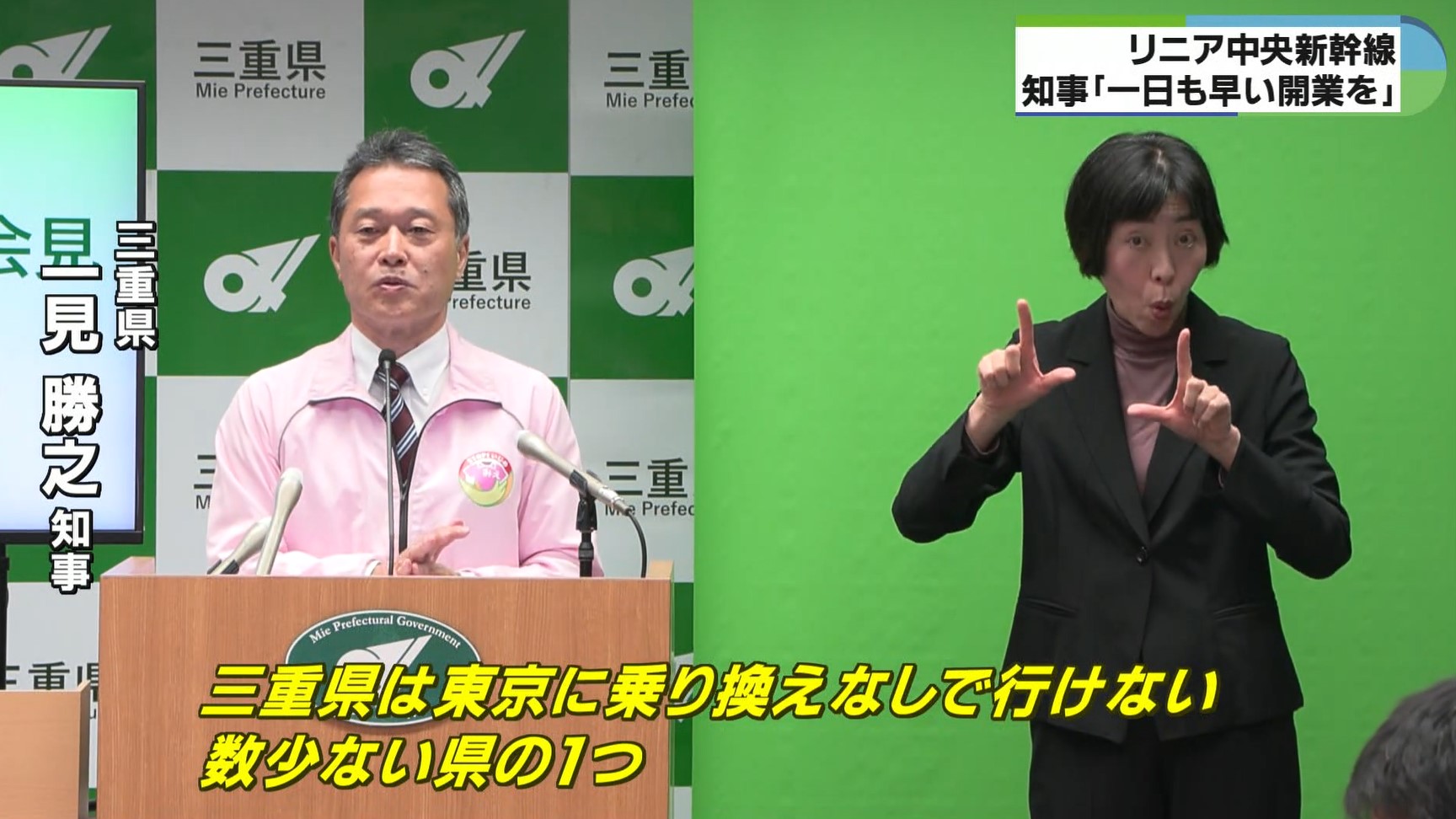 30日の会見で、一見知事は三重県を含むリニア中央新幹線の名古屋・大阪間について「三重県は東京に乗り換えなしで行けない数少ない県の一つ。三重県の駅の開業・開通について一日も早い実現をお願いしたい」と述べました。
