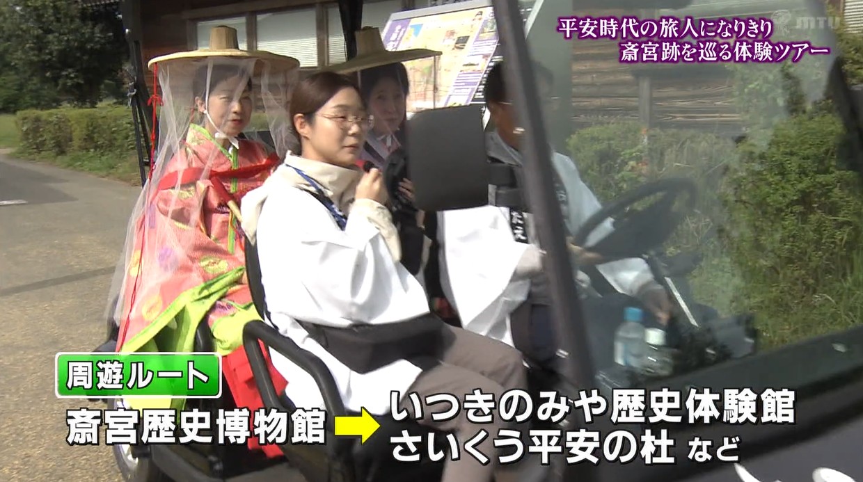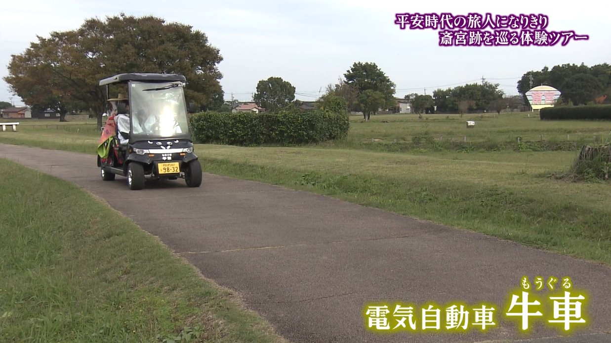 平安時代の旅人になりきり、電気自動車で斎宮跡を巡る体験ツアーが、2日から三重県明和町で行われています。